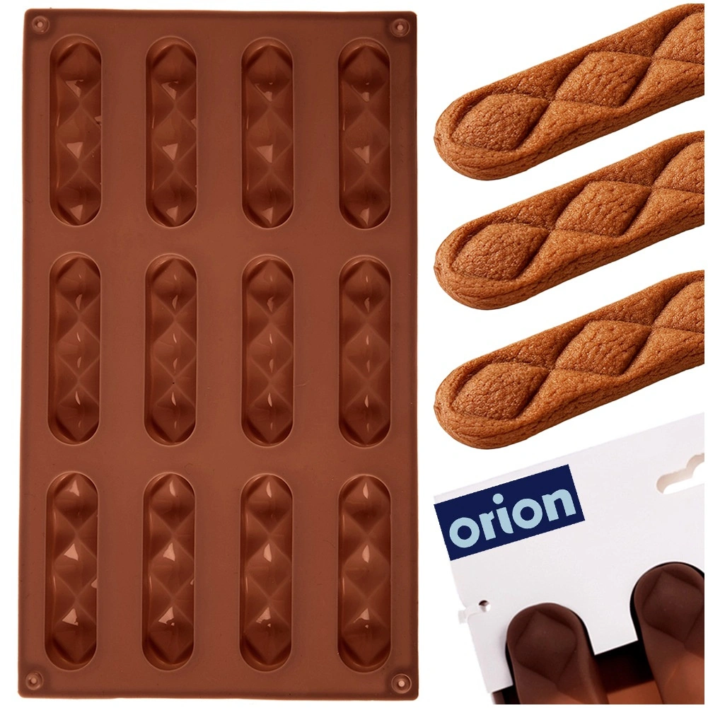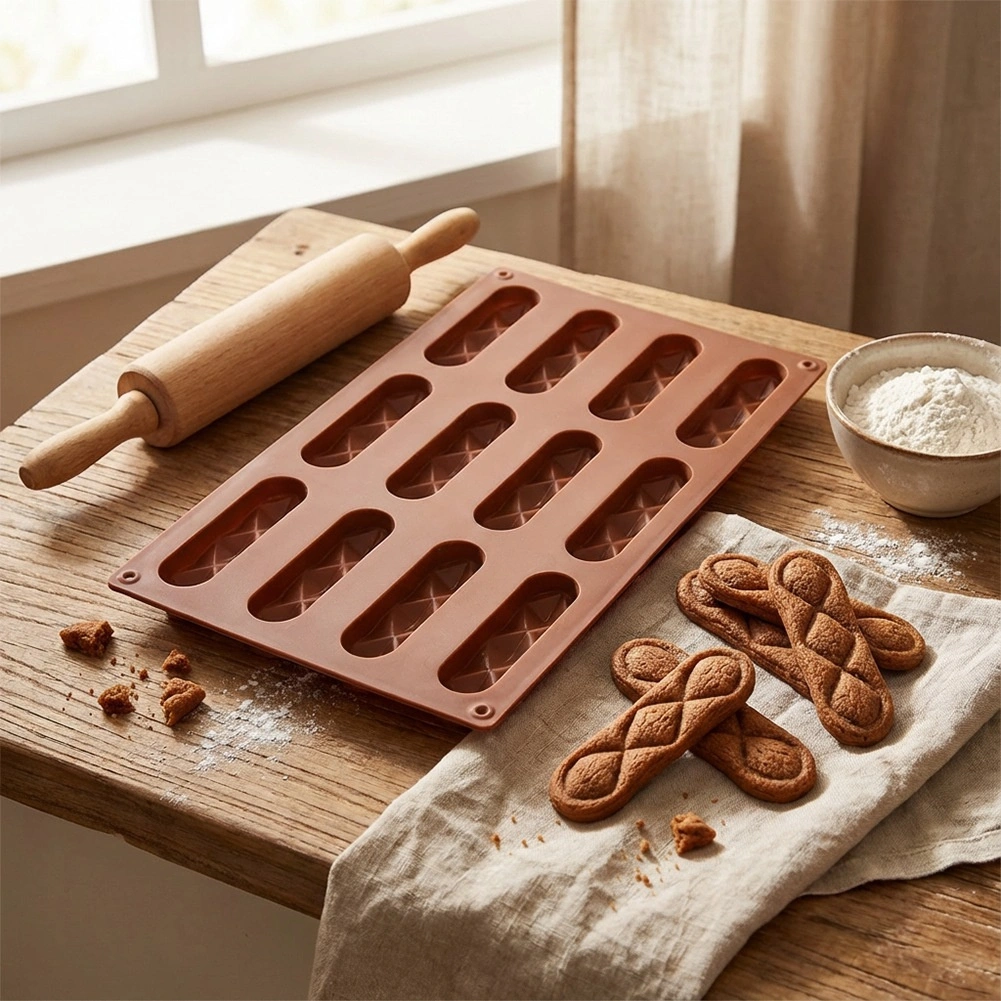 S tem kakovostnim silikonskim modelom boste pripravili krhke piškote in domače praline v elegantni podolgovati obliki. Ena serija zajame 12 kosov velikosti približno 8 × 2 × 1 cm, ki jih zaradi nelepljive površine preprosto odstranite brez lomljenja. Model zagotavlja enakomerno peko in čudovit dekor z diamantnim vzorcem.