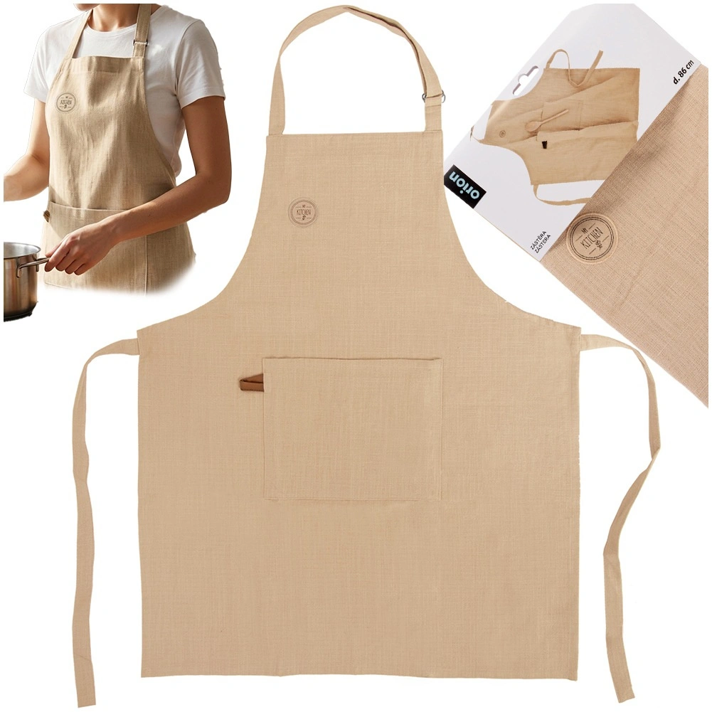 Praktičen velik sprednji žep sprejme kuhalnice, krpo ali listek z receptom, tako da boste imeli vse pri roki. Naravna bombažna tkanina je prijetna na otip, zračna in enostavna za vzdrževanje – pranje pri 40 °C.