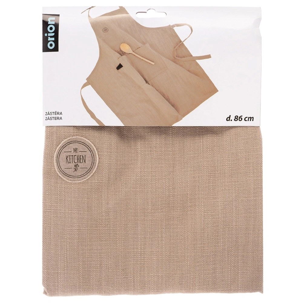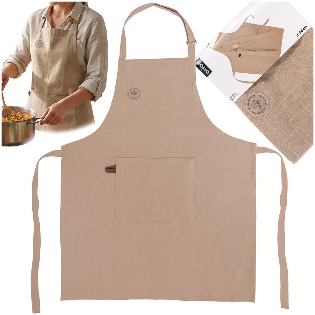 Praktičen kuhinjski predpasnik iz 100% bombaža v bež barvi ščiti oblačila pri kuhanju, peki in žarjenju. Zahvaljujoč nastavljivemu traku za vrat in dolgim zavezovalnim vrvicam se zlahka prilagodi vsaki postavi. Velik sprednji žep poskrbi, da imate recept, začimbe in drobne pripomočke vedno pri roki. Pranje do 40 °C.