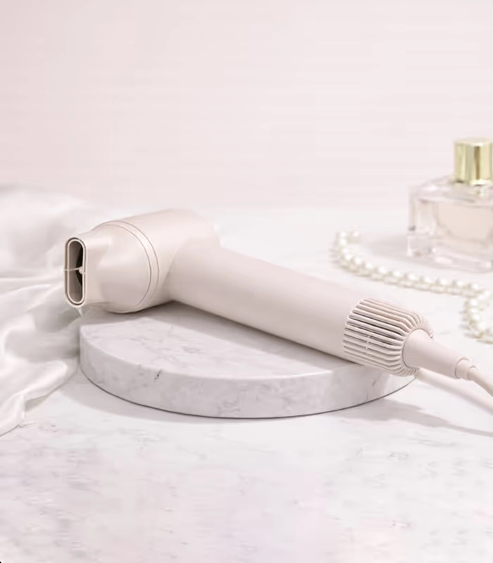 Upravljanje je intuitivno: nastavitev hitrosti in temperature ščiti lase glede na njihov tip, hladen zrak pomaga utrditi obliko, tipalo razdalje pa poveča udobje in varnost. Eleganten kremni dizajn deluje premium in odlično sede v roko ter se poda vaši kopalnici.