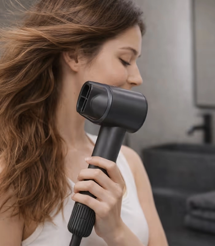 Zmogljiv BLDC motor 100.000 vrt./min zagotavlja močan in enakomeren zračni tok za hitrejše sušenje. Hladen zrak pomaga zapreti kutikulo in utrditi obliko. Praktični senzor razdalje prispeva k udobnejši in varnejši uporabi.