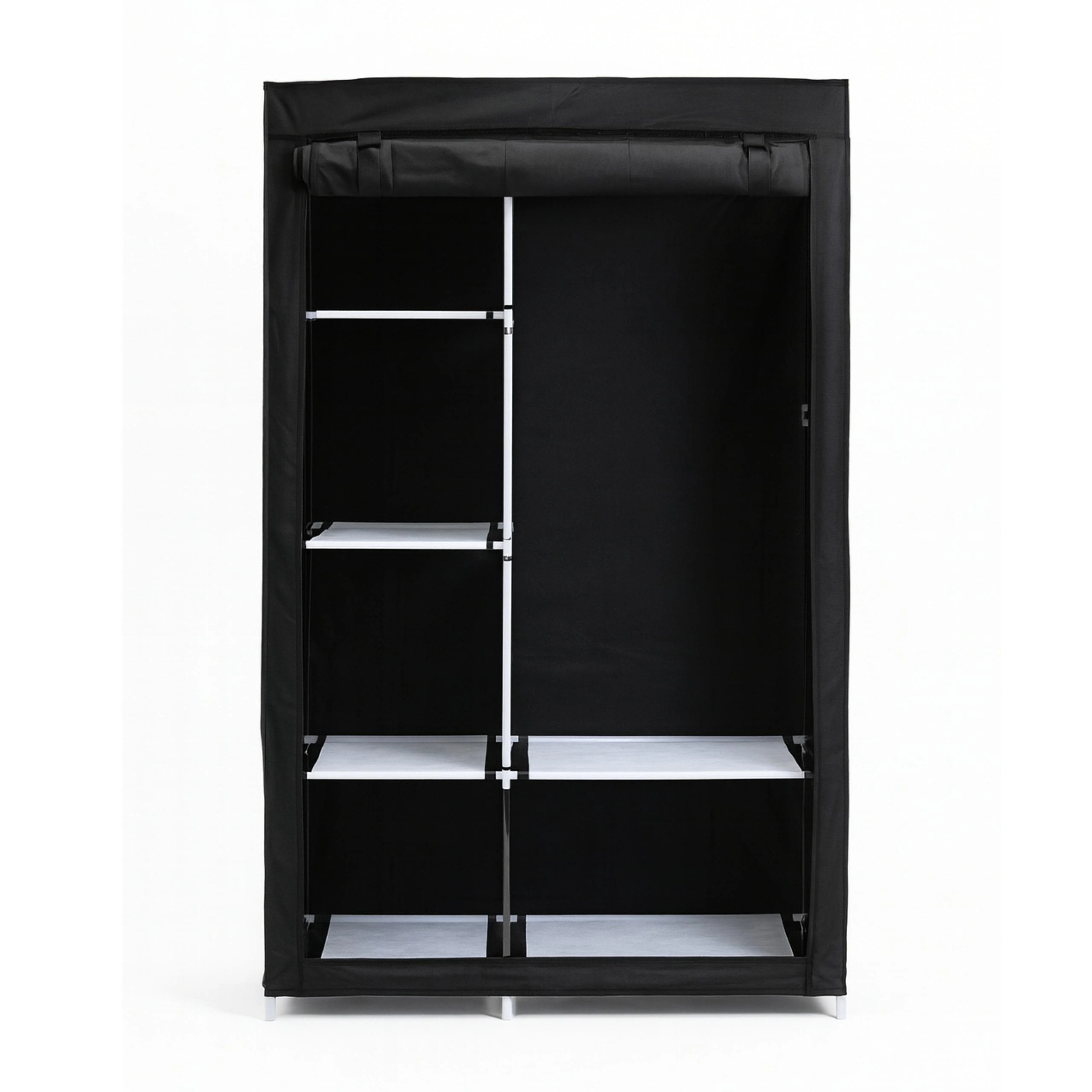 Iščete prostorsko varčno in funkcionalno rešitev za pregledno shranjevanje oblačil? Ta črna tekstilna omara združuje trdno ogrodje iz kovinskih cevi in vzdržljivo prevleko, ki ščiti oblačila pred prahom z vseh strani – vključno s spodnjim delom zahvaljujoč polnemu tekstilnemu dnu. Vanjo zlahka pospravite plašče, jakne in dodatke.