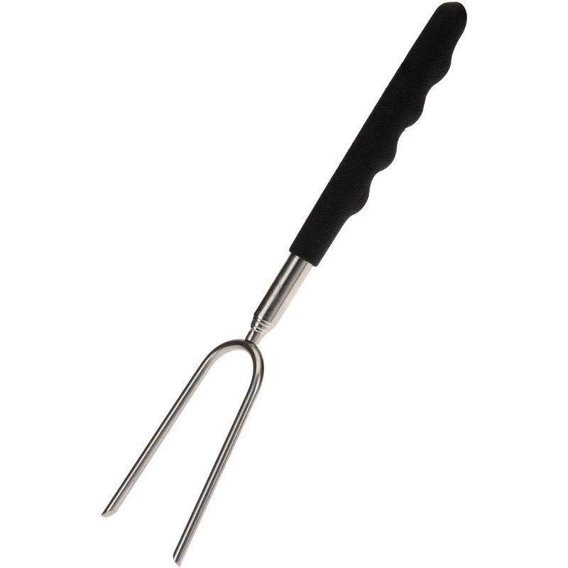 Praktična teleskopska vilica za pečenje iz nerjavečega jekla z dvojnim zobom in nedrsečim ročajem. Zahvaljujoč nastavljivi dolžini 24–72 cm boste ohranili varno razdaljo od žara in zlahka nabodli hrenovke, meso, zelenjavo in marshmallowe. Idealna za taborni ogenj, žar, piknike in kampiranje.