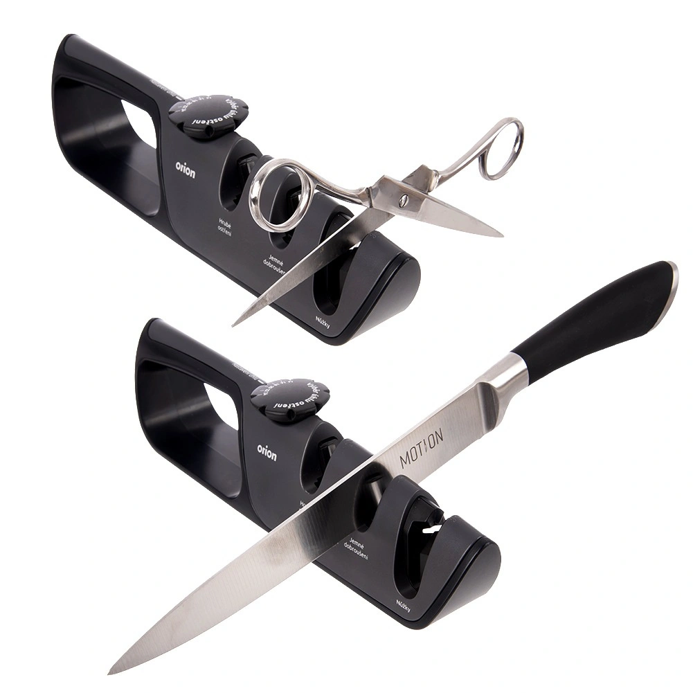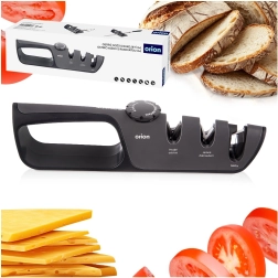 Ohranjajte svoje kuhinjske nože vedno popolnoma ostre s tem trifaznim brusilcem z brezstopenjskim nastavljivim kotom 14–24°. Ponuja univerzalno uporabo za jeklene in keramične nože, tri brusne cone za grobo, srednje in fino brušenje ter stabilno, varno zasnovo z ergonomsko ročico in nedrsečo osnovo.