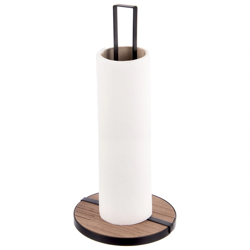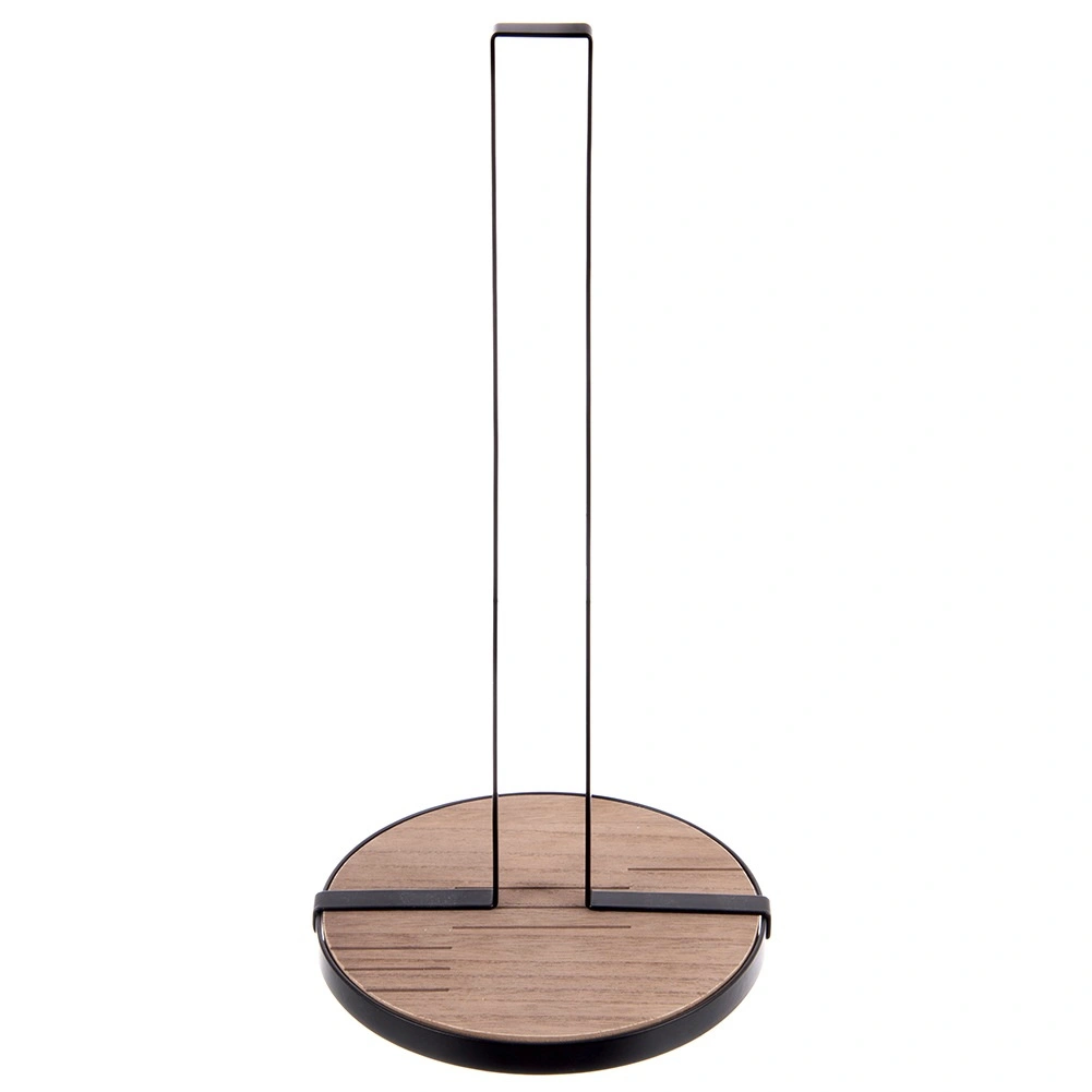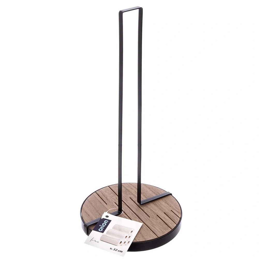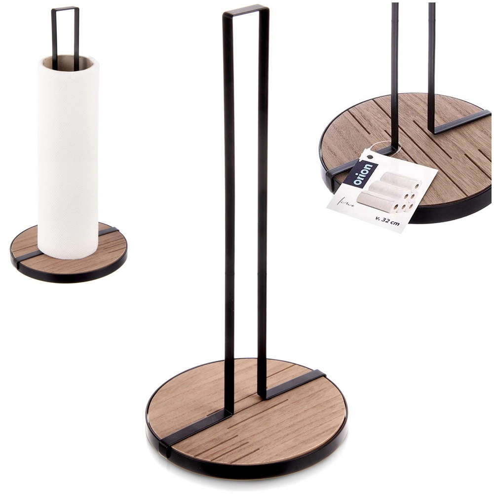 Stojalo za papirnate brisače LINE v dimenzijah 15,5 × 15,5 × 32,5 cm je praktičen pomočnik za vsakodnevno kuhanje in čiščenje. Robusten kovinski okvir v črni barvi in krožna lesena osnova iz MDF zagotavljata odlično stabilnost in dolgo življenjsko dobo.