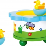 Glasbena skrinjica, ki prinaša veselje in zabavo v vsako otroško sobo. Dve majhni rački, pritrjeni z magneti, se elegantno vrtita in ju je mogoče odstraniti ter uporabljati za samostojno igro. Ta mala glasbena naprava ne le spodbuja otroško domišljijo, temveč tudi podpira njihov razvoj fine motorike.