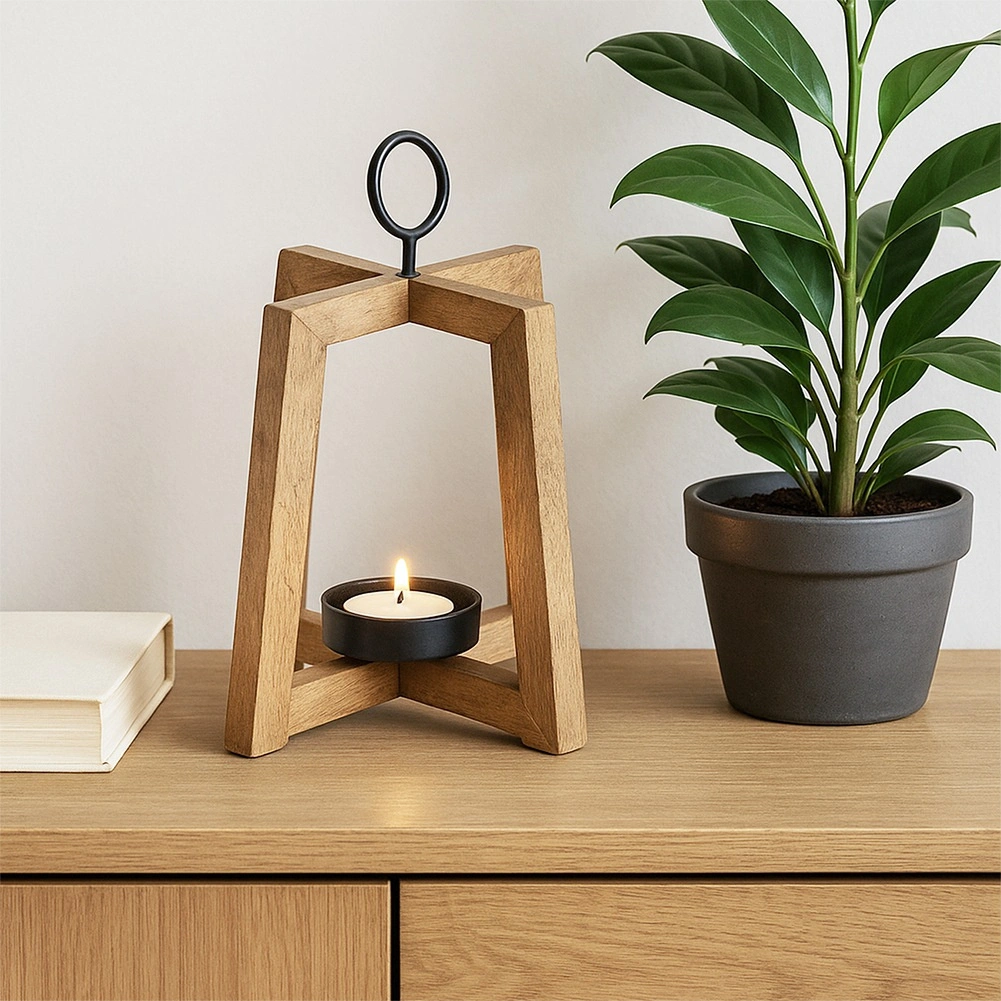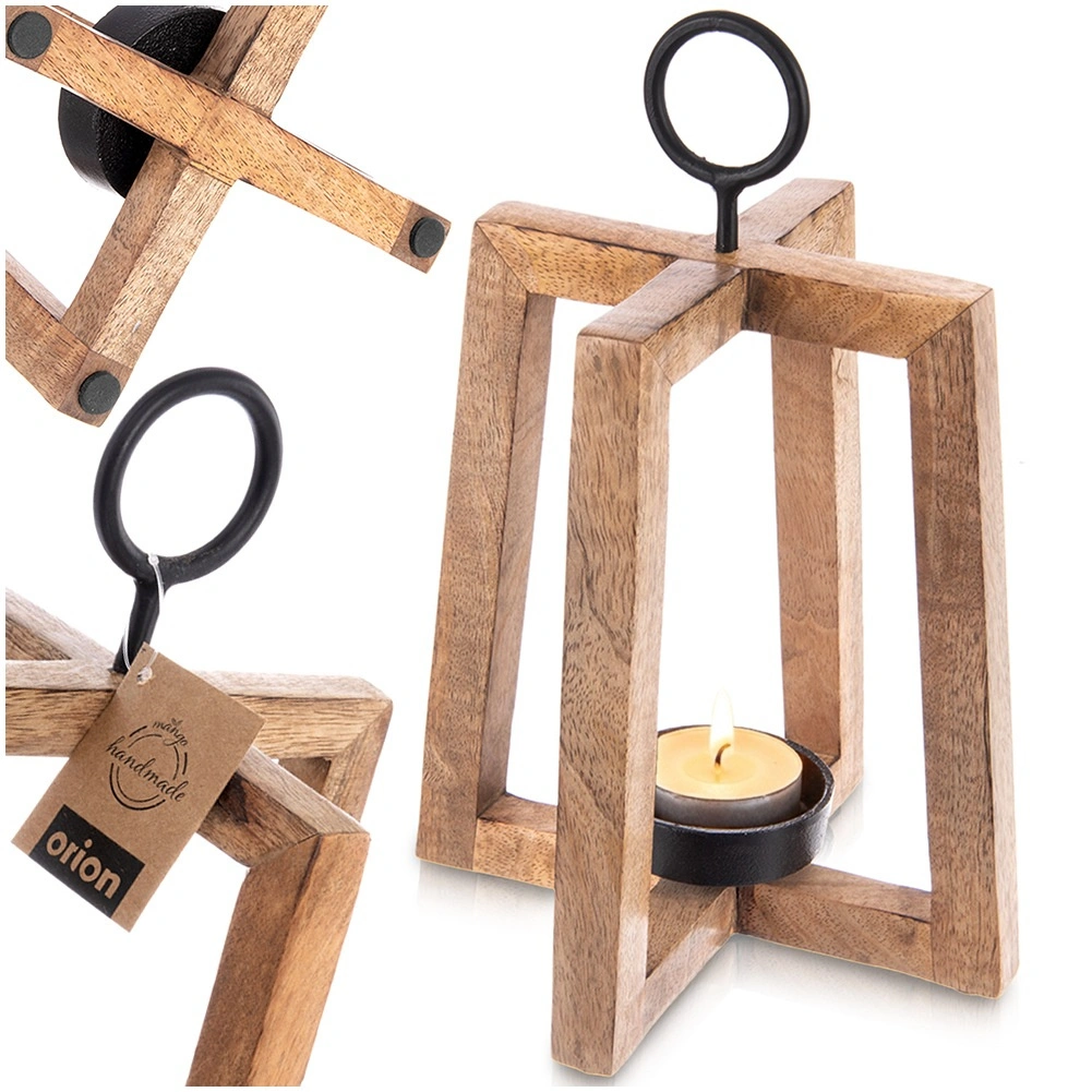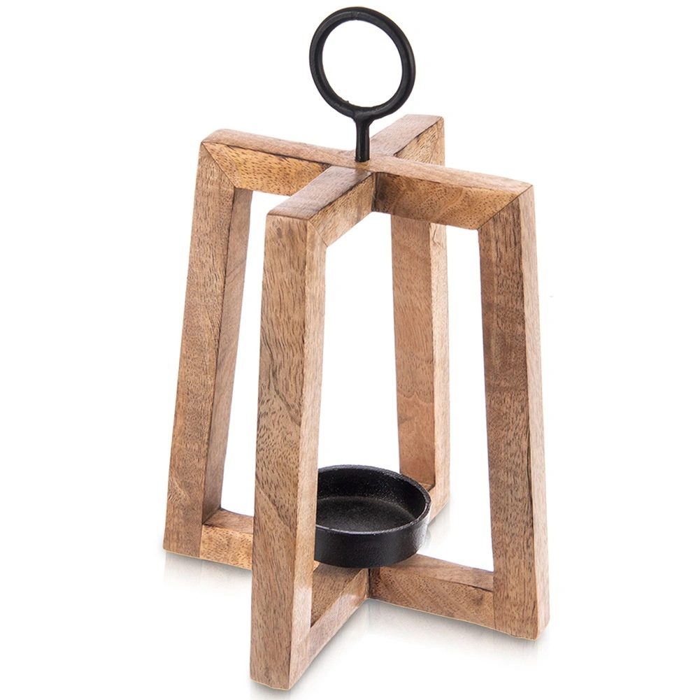 Dizajnerski svečnik z odprtim okvirom izstopa s toplim odtenkom in teksturo mangovega lesa. Odlično dopolnjuje moderne, skandinavske in rustikalne interierje, kovinski obroč pa omogoča tudi enostavno obešanje pri vhodu, na balkonu ali terasi.