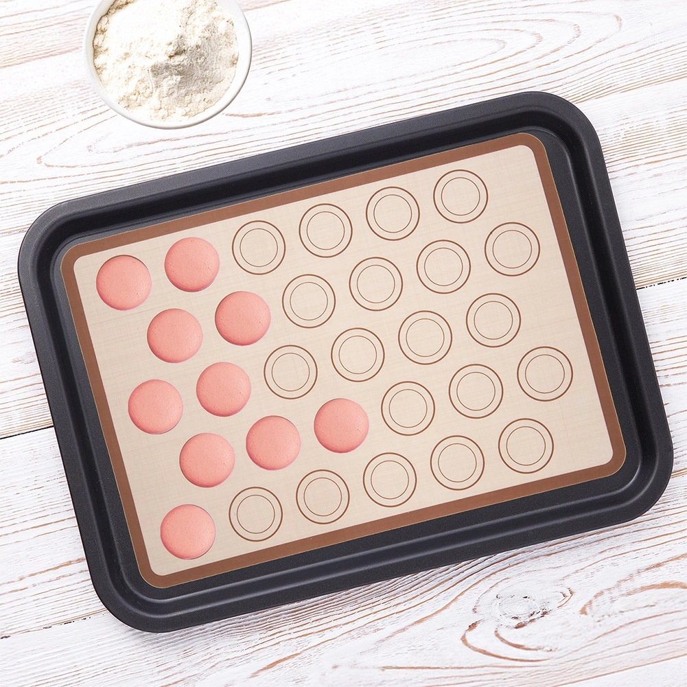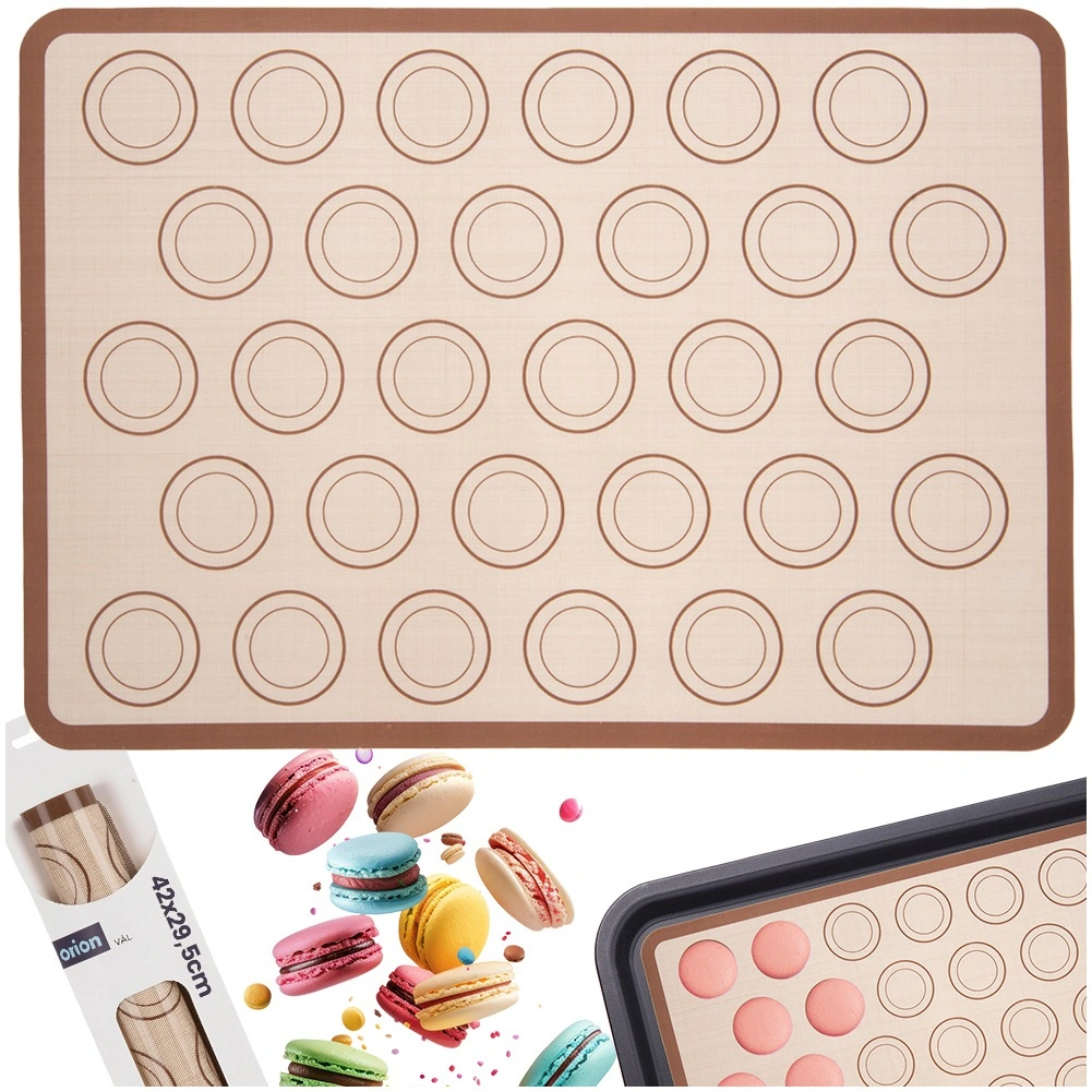 Ta silikonska podloga olajša pripravo francoskih makronov in drugih okroglih sladic. Zahvaljujoč 30 označenim krogom v dveh velikostih boste zlahka ohranili enotno velikost in razmike. Nelepljiva površina zagotavlja enostavno odstranjevanje pečenih kosov ter čistejše delo brez lepljenja testa.