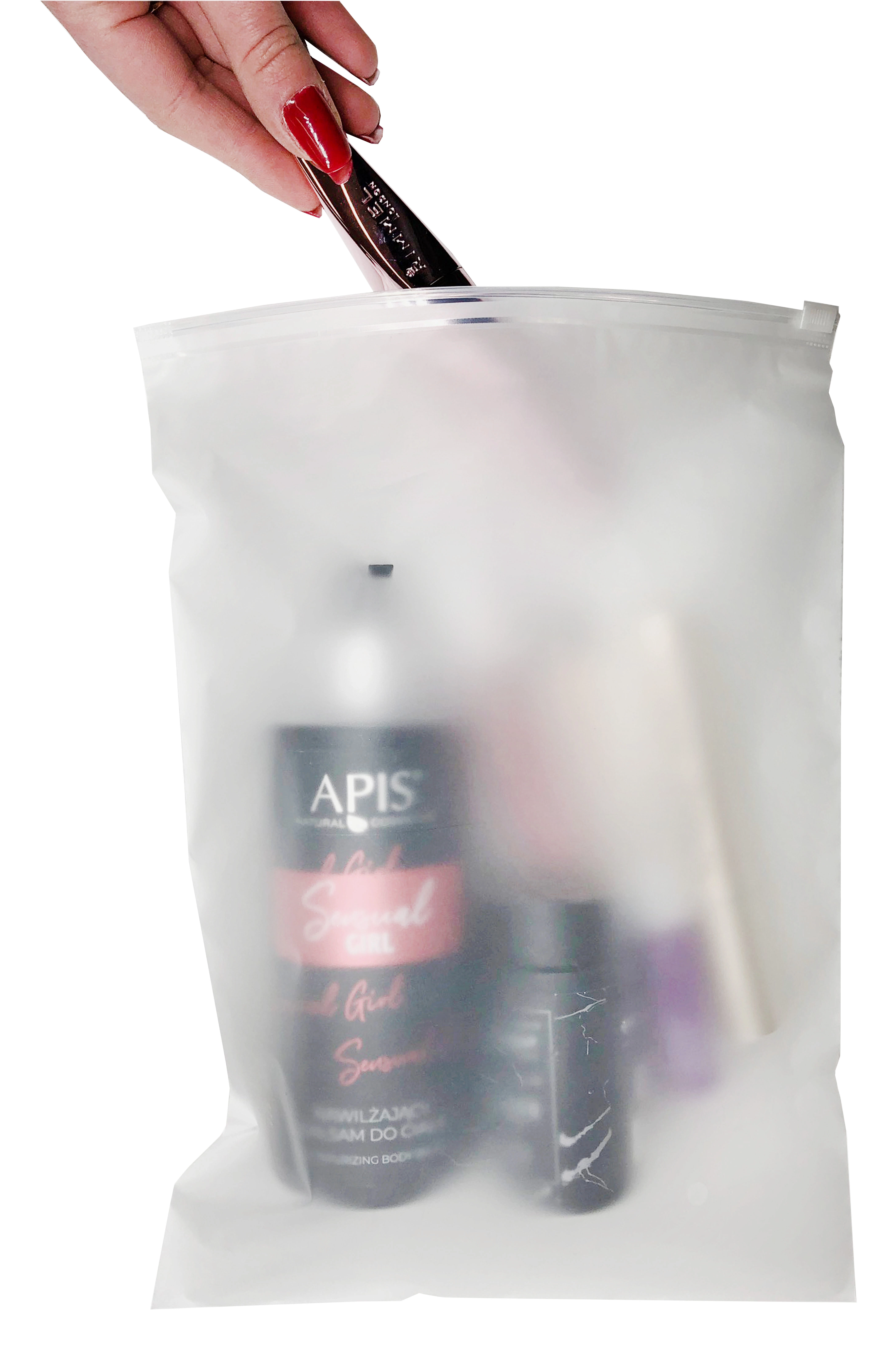 Polmat vrečke ohranijo stekleničke, tube in čopiče skupaj, jih zaščitijo pred vlago in nečistočami ter olajšajo pakiranje za pot.