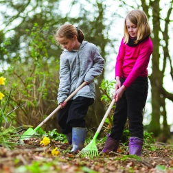Lopata se odlično dopolnjuje z otroškimi grabljami ali metlo – ustvarite popoln vrtnarski komplet za igro in učenje na vrtu.