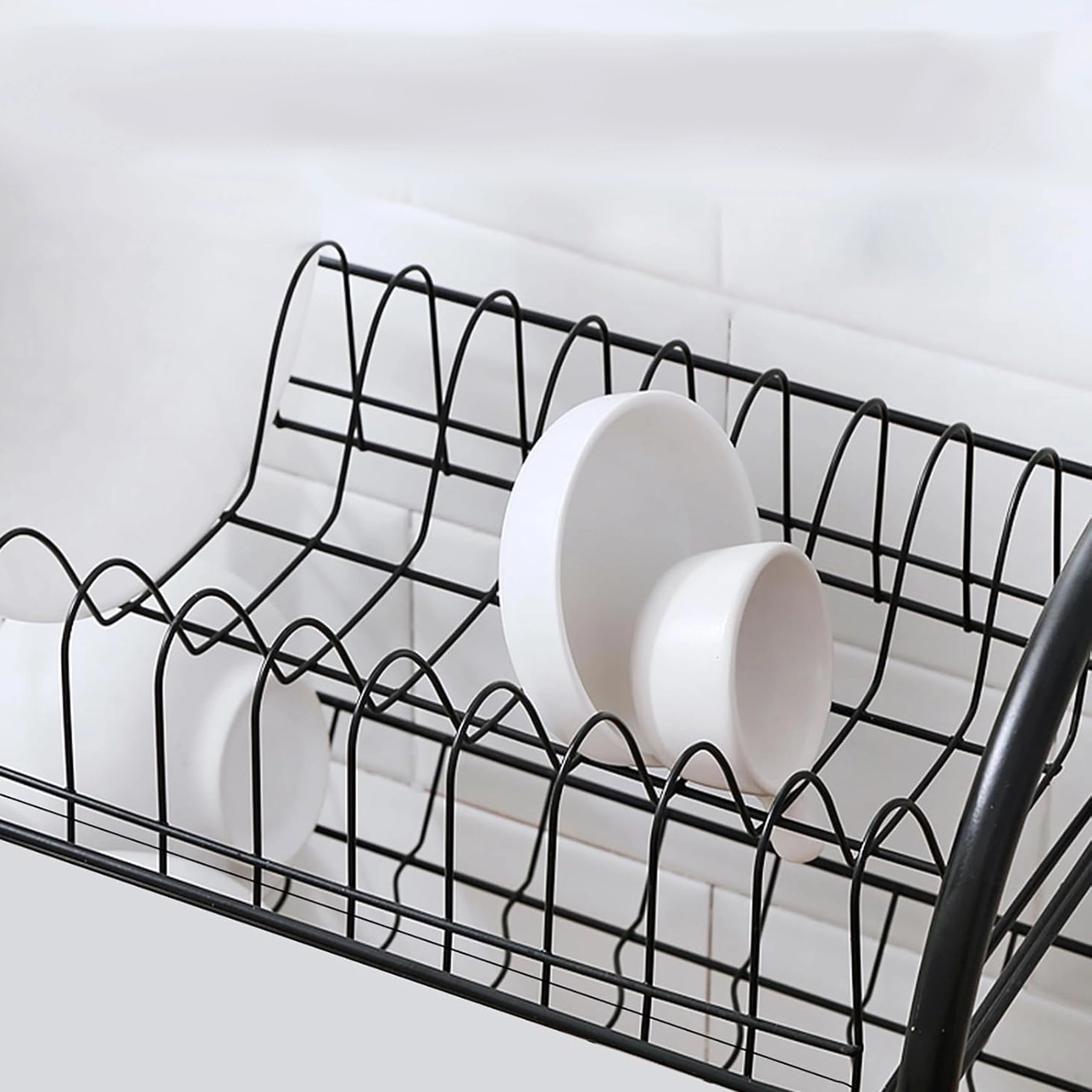 Zgornji nivo za krožnike in spodnji za sklede ali kozarce pospešita sušenje in prihranita prostor na pultu.