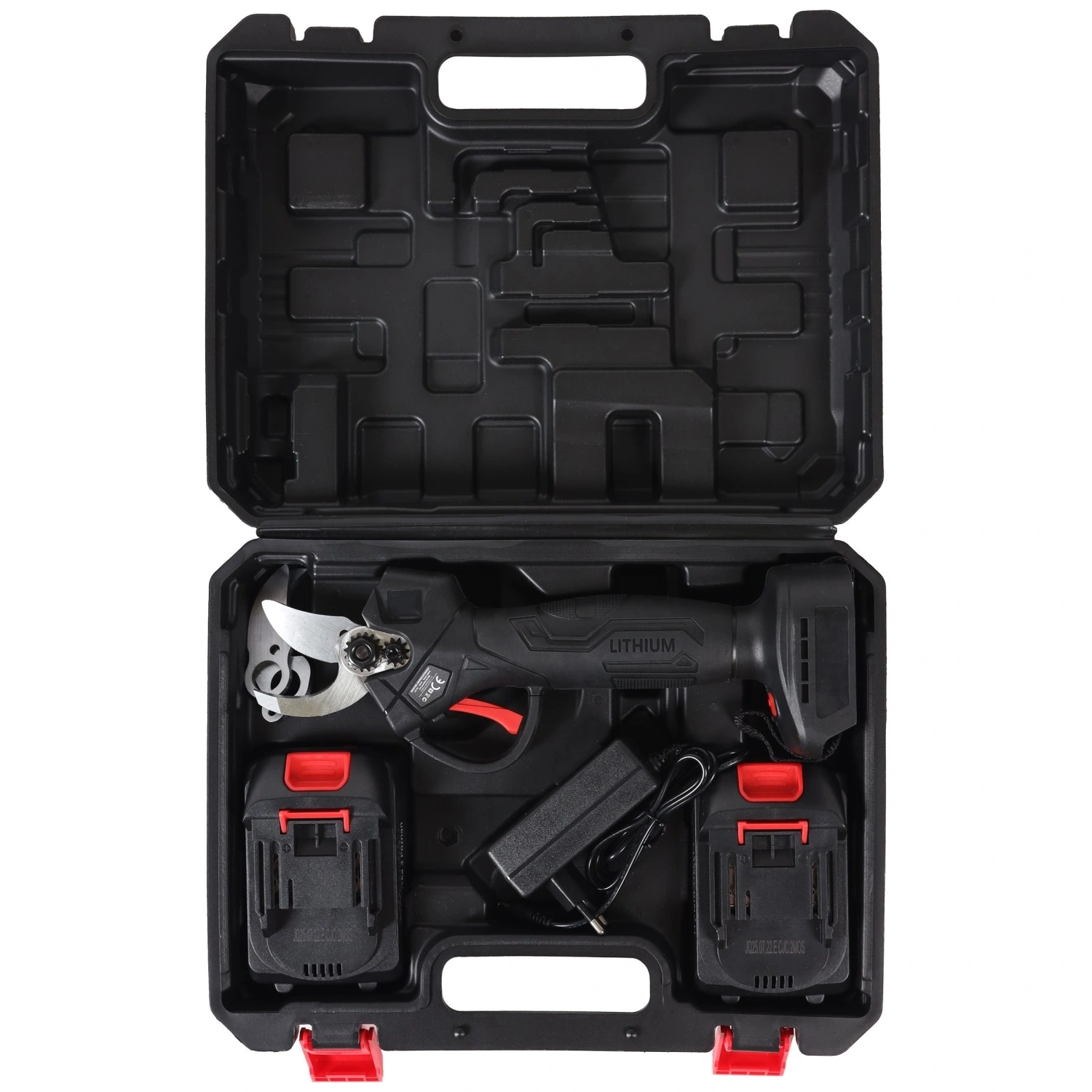 Dvostopenjsko odpiranje rezil omogoča prilagoditev širine reza glede na tip veje – od nežnih poganjkov do debelejših vej. Varnostna zapora preprečuje nenamerno odpiranje rezil med prenašanjem in shranjevanjem. Priložen je popoln komplet dodatne opreme, vključno z dvema 21 V baterijama, polnilnikom, rezervnimi rezili in setom za vzdrževanje za dolgo življenjsko dobo orodja.