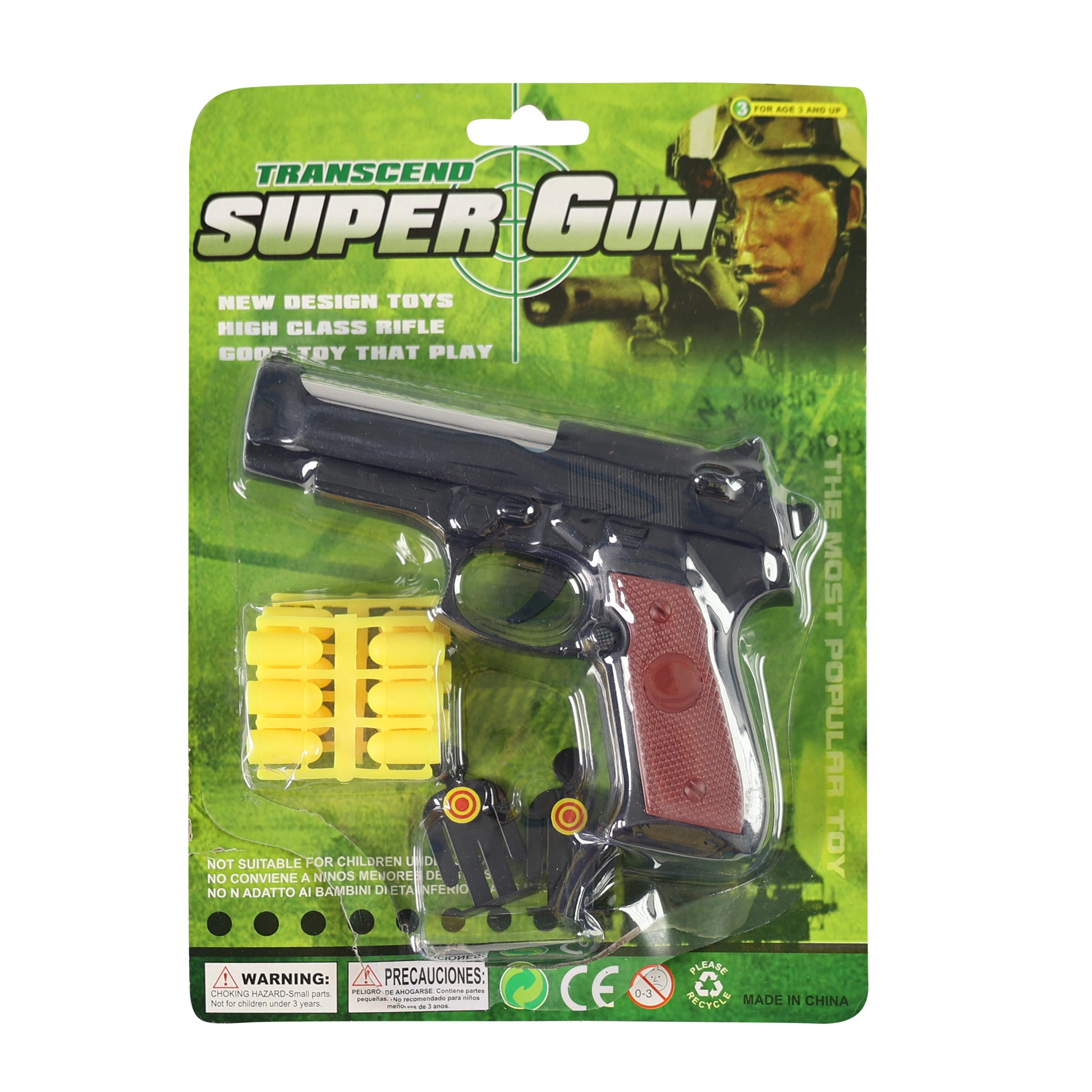 - Celovit paket: pištola, 12 gumijastih nabojev, 2 tarči