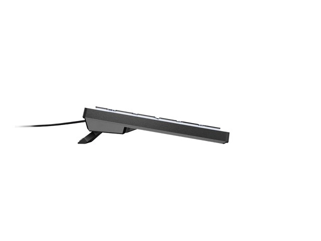 Zložljive nogice za nastavitev kota in protizdrsne podloge za zanesljiv oprijem na mizi. Polna numerična sekcija in 12 funkcijskih tipk pospešita vsakodnevno delo.