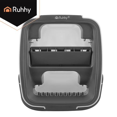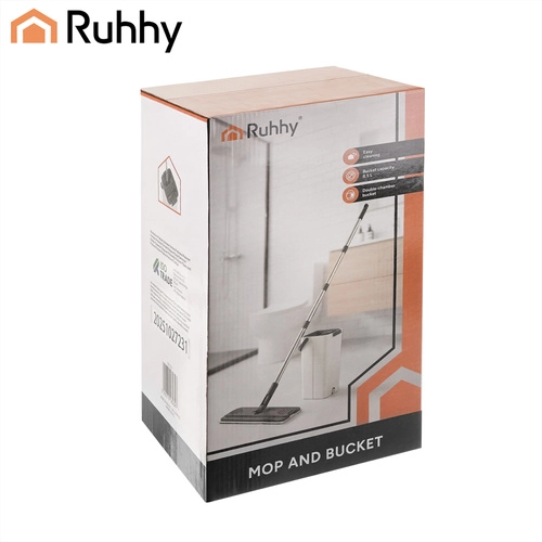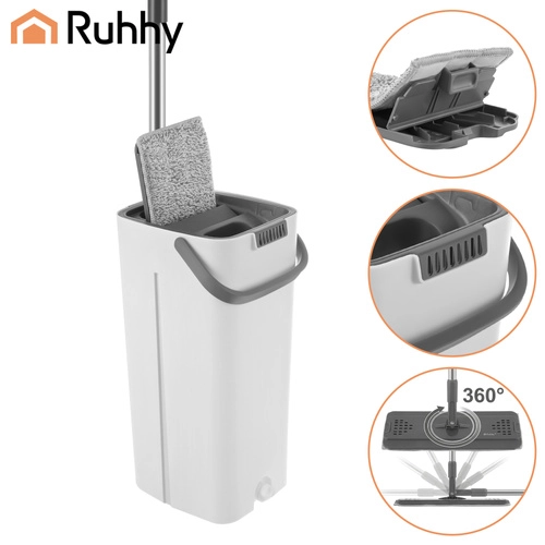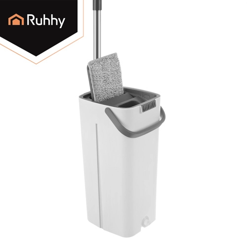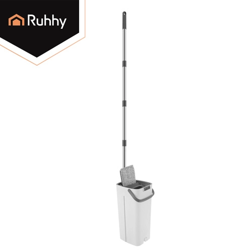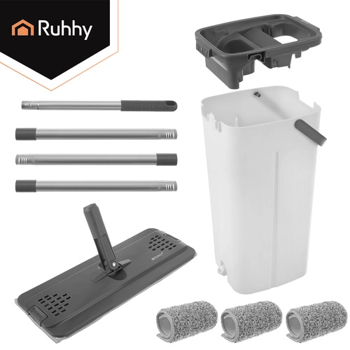 Brez več pranja v motni vodi. Dvokomorni sistem RUHHY zagotavlja, da tla vedno brišete z svežo čisto vodo, medtem ko nečistoče ostanejo v ločeni komori. Vgrajen brez- dotikalni ožemalni mehanizem hitro odstrani odvečno vodo ter lase in prah s prevleke, zato se tla sušijo hitreje in brez lis.