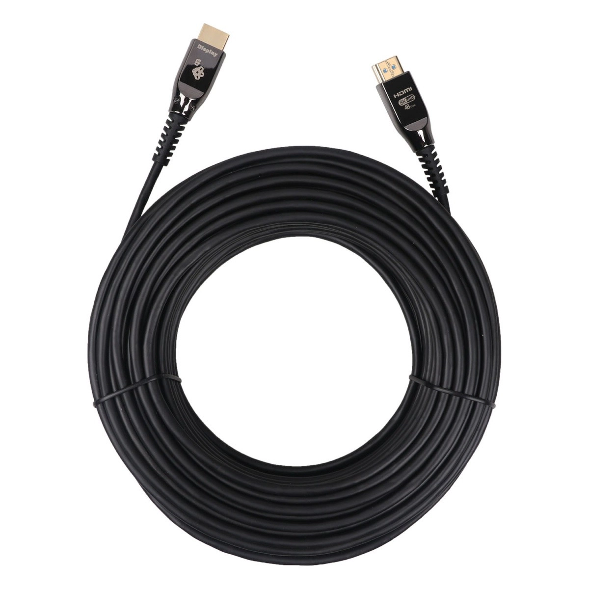 Z optično tehnologijo (AOC) odpravlja motnje in dušenje, ki običajno spremljata dolge bakrene kable. Konektorji s 24-karatno pozlato zagotavljajo dolgo življenjsko dobo in odlično prevodnost. Kabel je pripravljen na prihodnje standarde in je združljiv s širokim naborom naprav – od PC-jev in prenosnikov, prek predvajalnikov in konzol, do TV-jev in projektorjev.