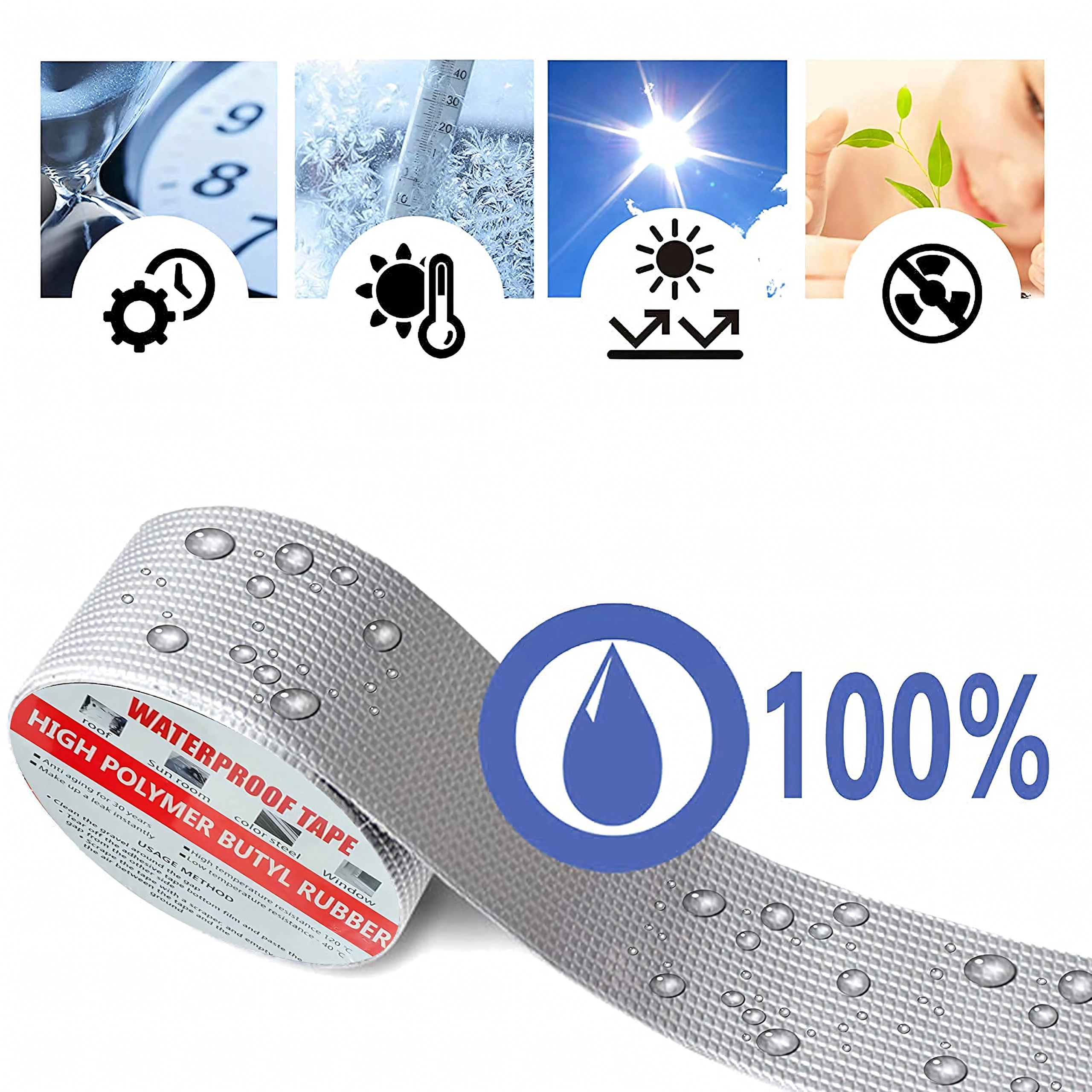 Ta samolepilni butilni trak z aluminijasto površino je idealen za popravila in tesnjenje v notranjih in zunanjih prostorih. Zaradi visoke oprijemljivosti in prožnosti zanesljivo ustavi iztekanje vode in zatesni spoje tudi na neravnih površinah.