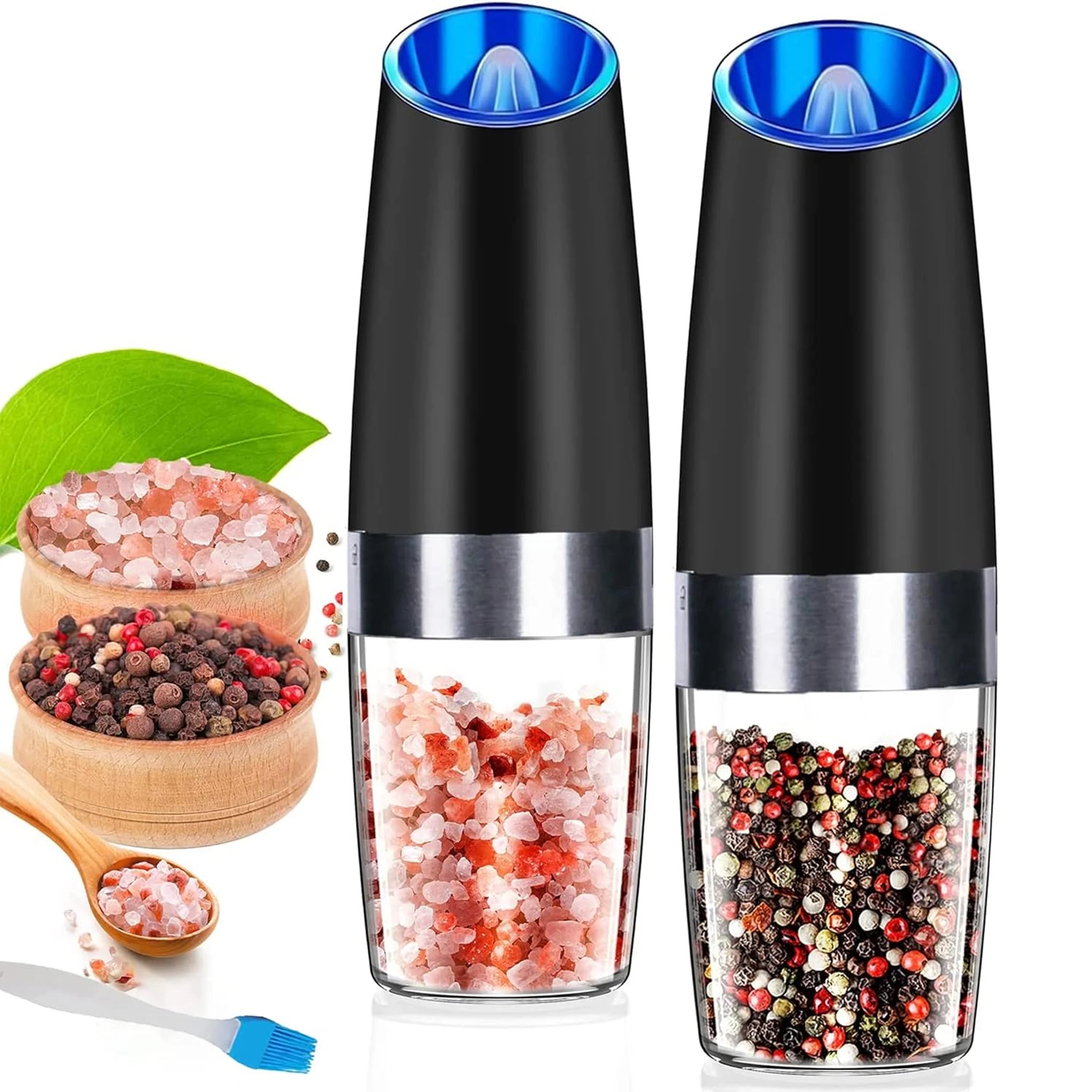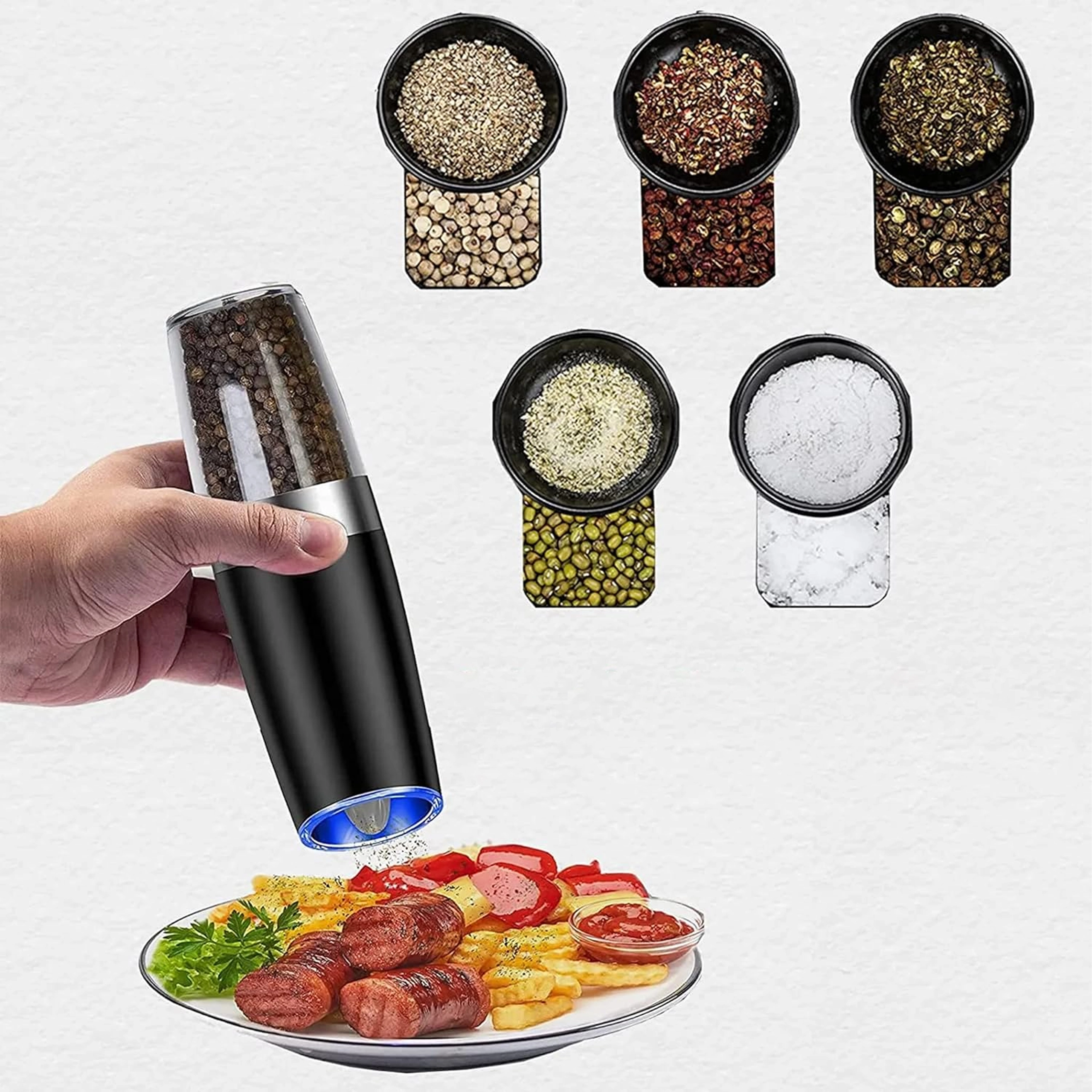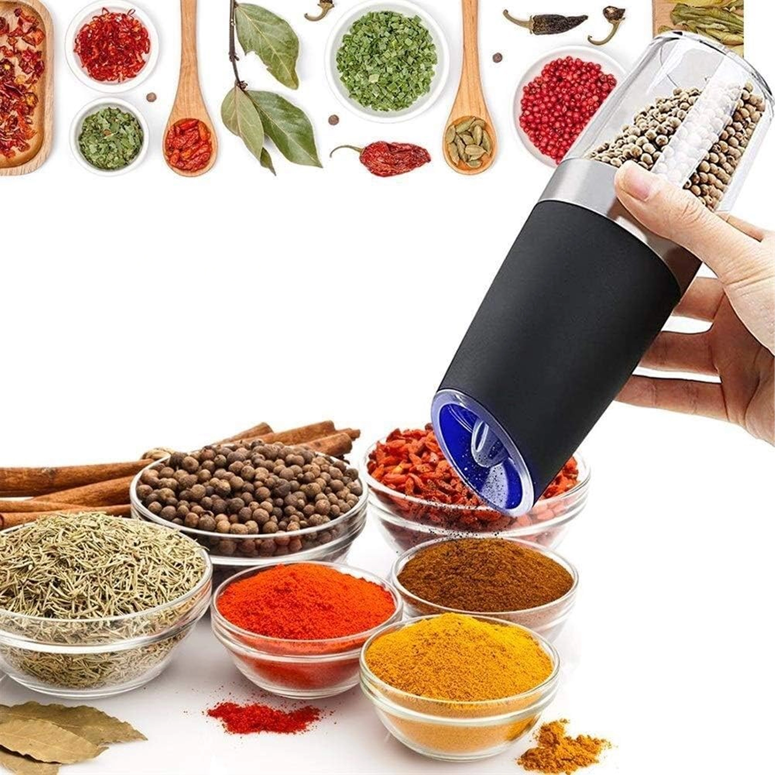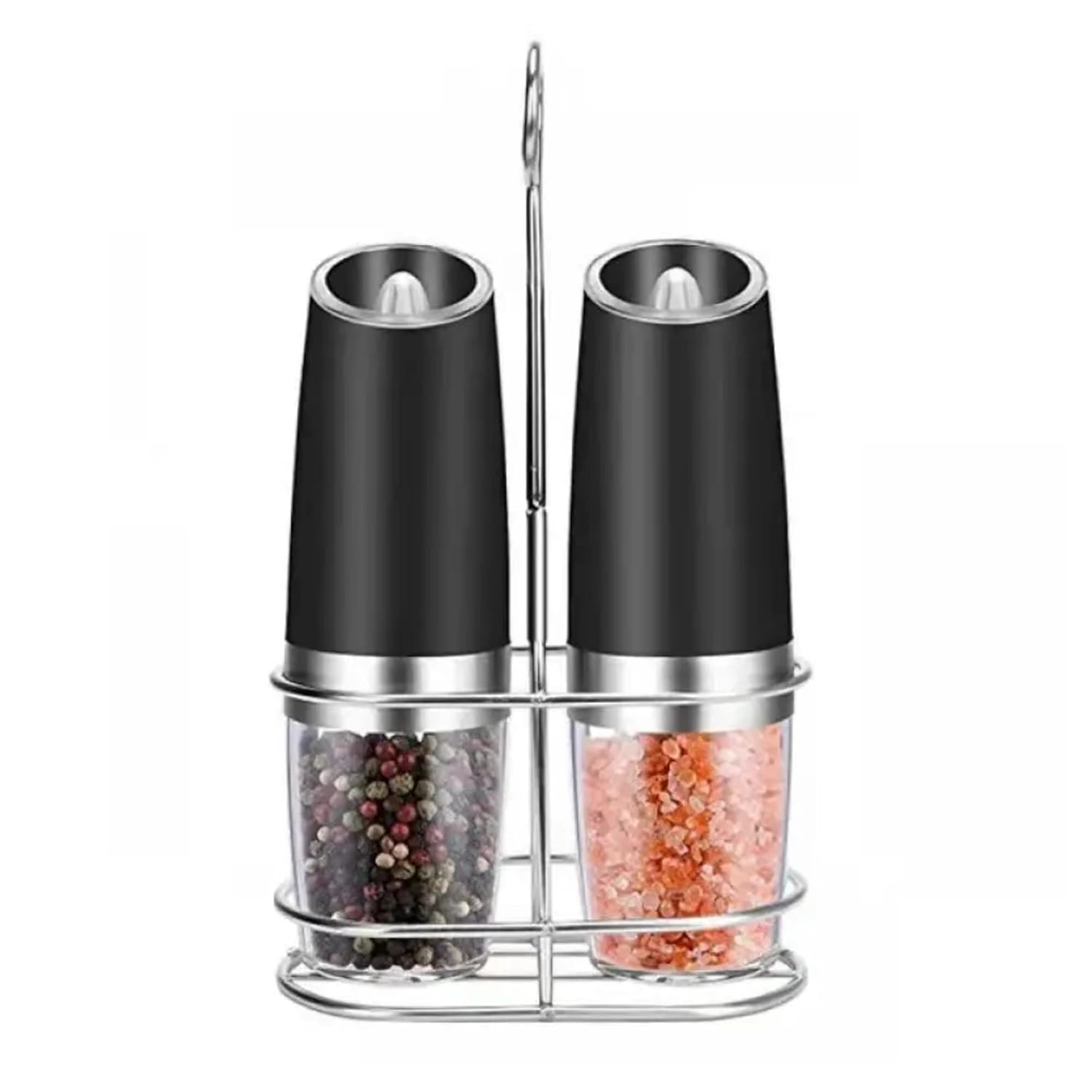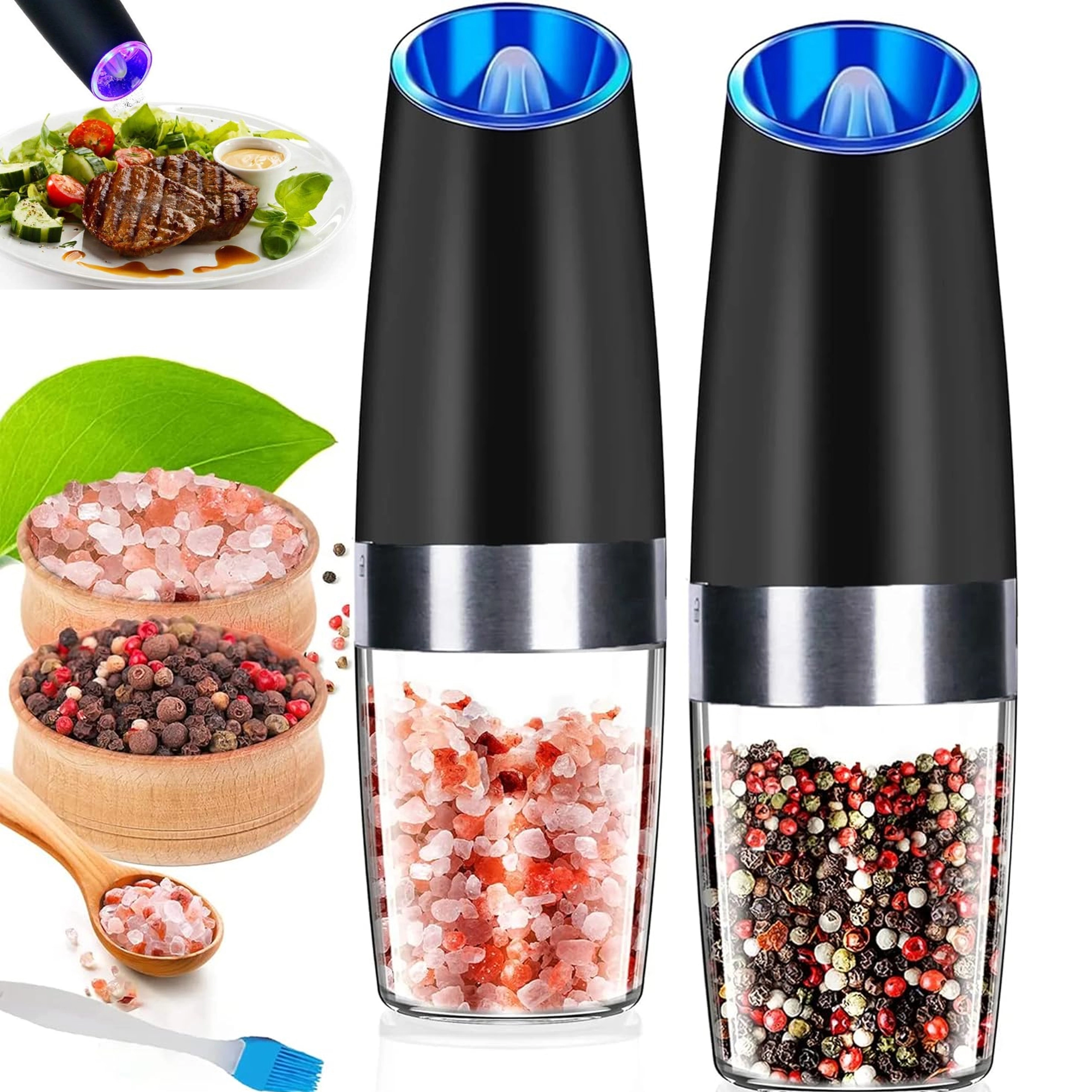 Odkrijte udobje vsakodnevnega začinjanja s kompletom dveh električnih gravitacijskih mlinčkov. Dovolj je, da ju nagnete, in sveže zmeljeta sol, poper ali druge začimbe – brez pritiskanja gumbov. Prozoren zalogovnik za enostaven nadzor, nastavljiva grobost mletja in vgrajena LED osvetlitev za natančno doziranje naredijo te mlinčke za eleganten in praktičen dodatek vsaki kuhinji. Samodejno mletje, upravljanje z eno roko, LED svetloba in moderen dizajn za vašo kuhinjsko površino.
