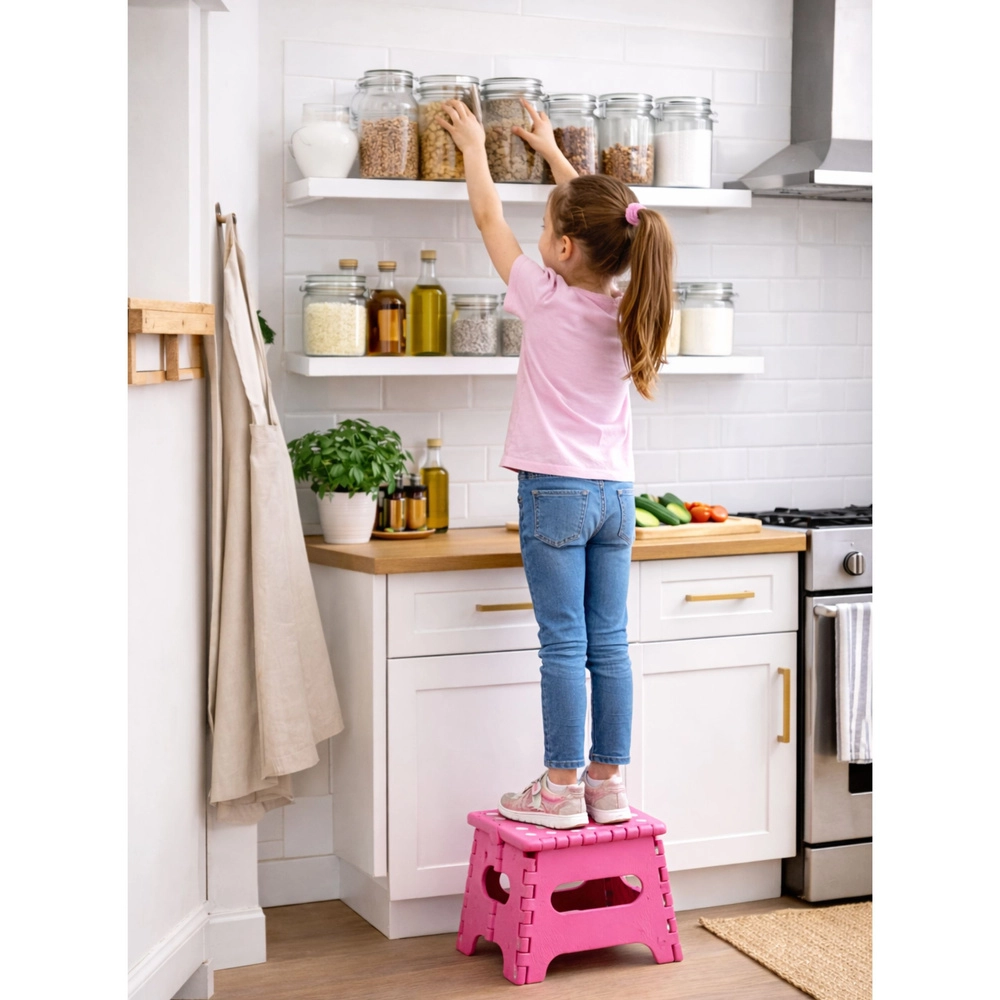 Idealna za otroke pri umivalniku, za lažji doseg višjih polic v kuhinji ali garderobi, kot pomožni sedež ali praktičen dodatek za kampiranje in potovanja. Minimalističen dizajn in kompaktne mere se podajo v vsak interier.