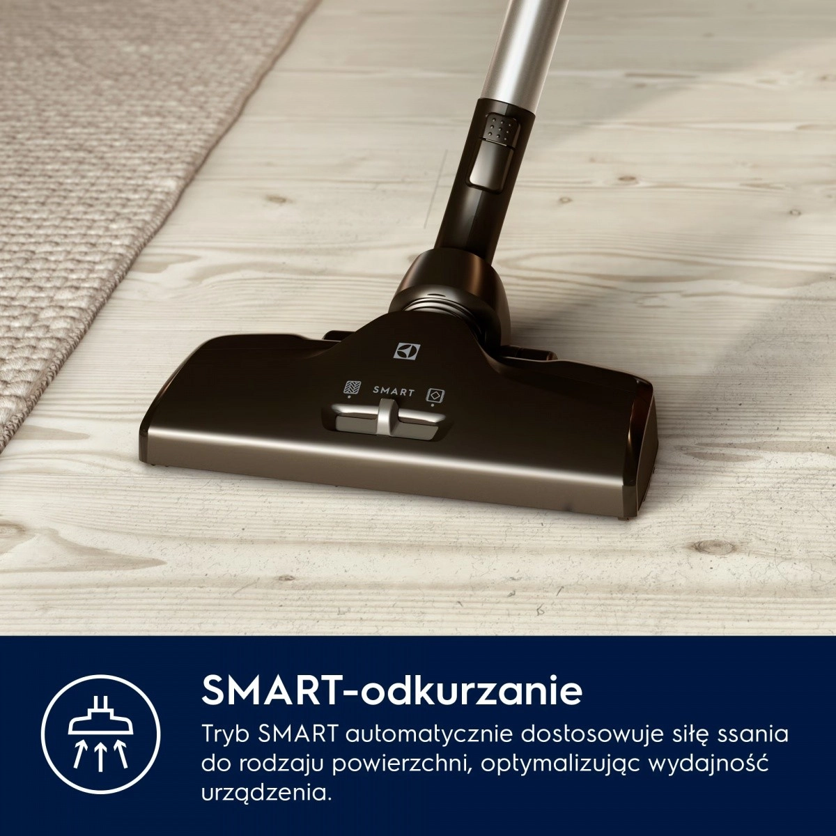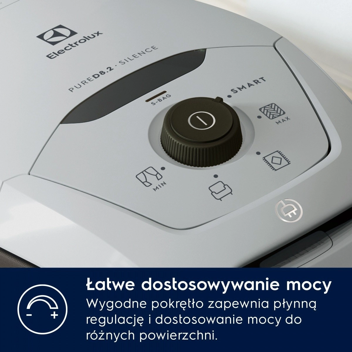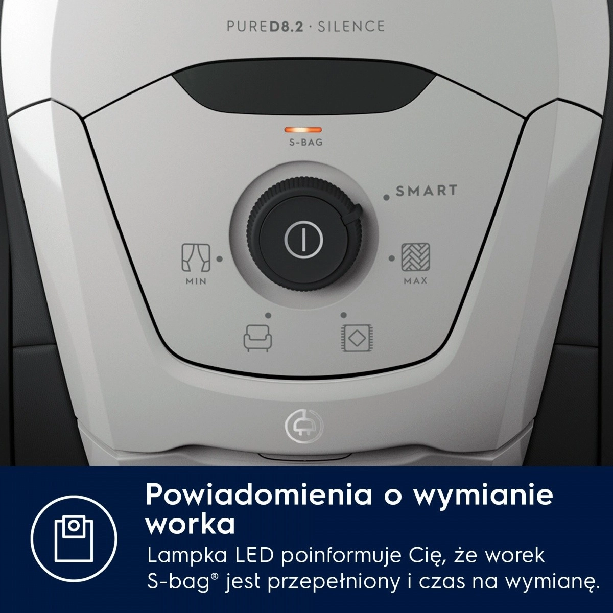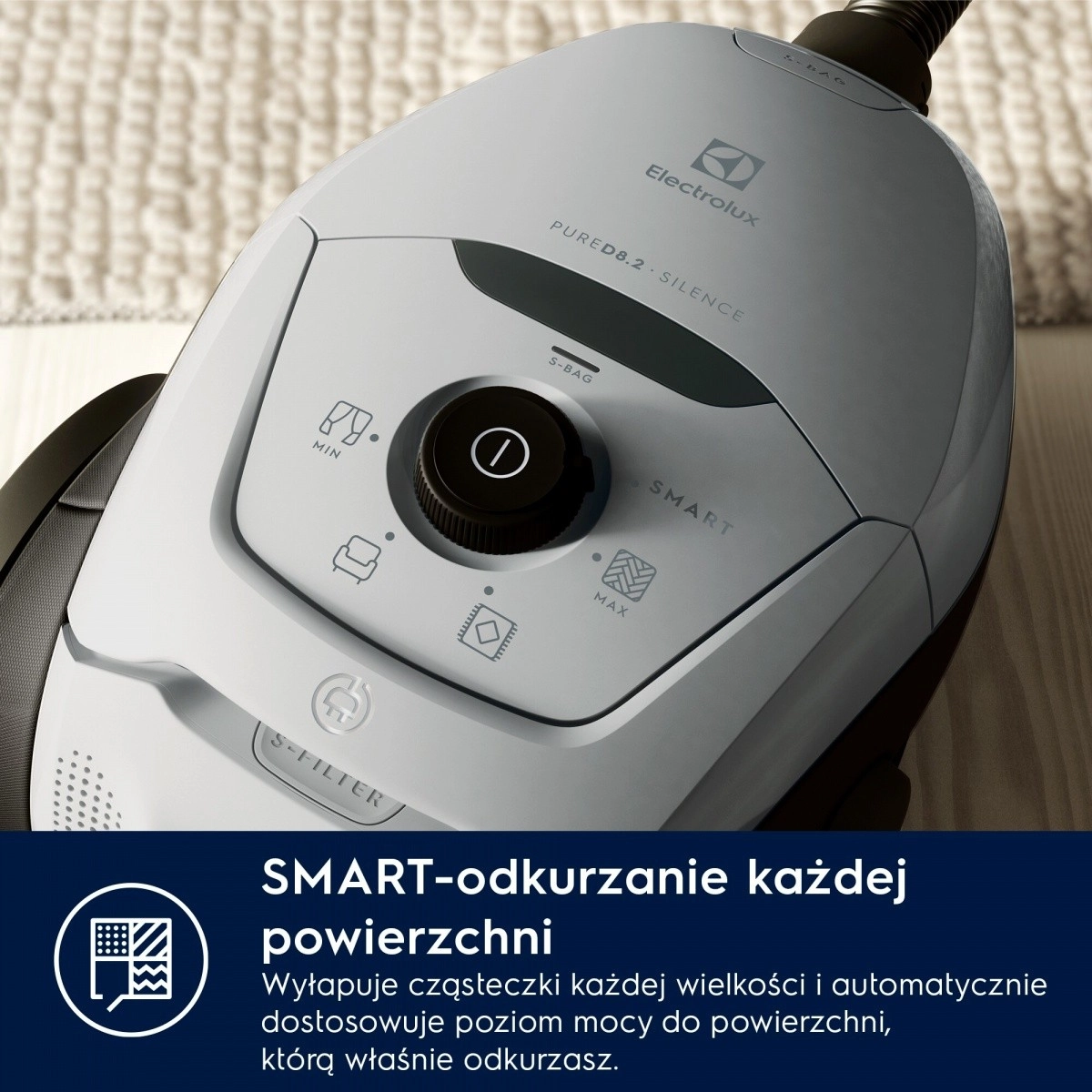 Pure D8.2 Silence PD82-4MG prinaša vrhunsko kombinacijo tišine, zmogljivosti in higiene. Tehnologija SmartMode samodejno prepozna tip tal in prilagodi sesanje za optimalen rezultat brez ročnih nastavitev. Inovativen sistem PureSound zmanjša hrup na vsega 57 dB(A), zato lahko sesate tudi med spanjem otrok.