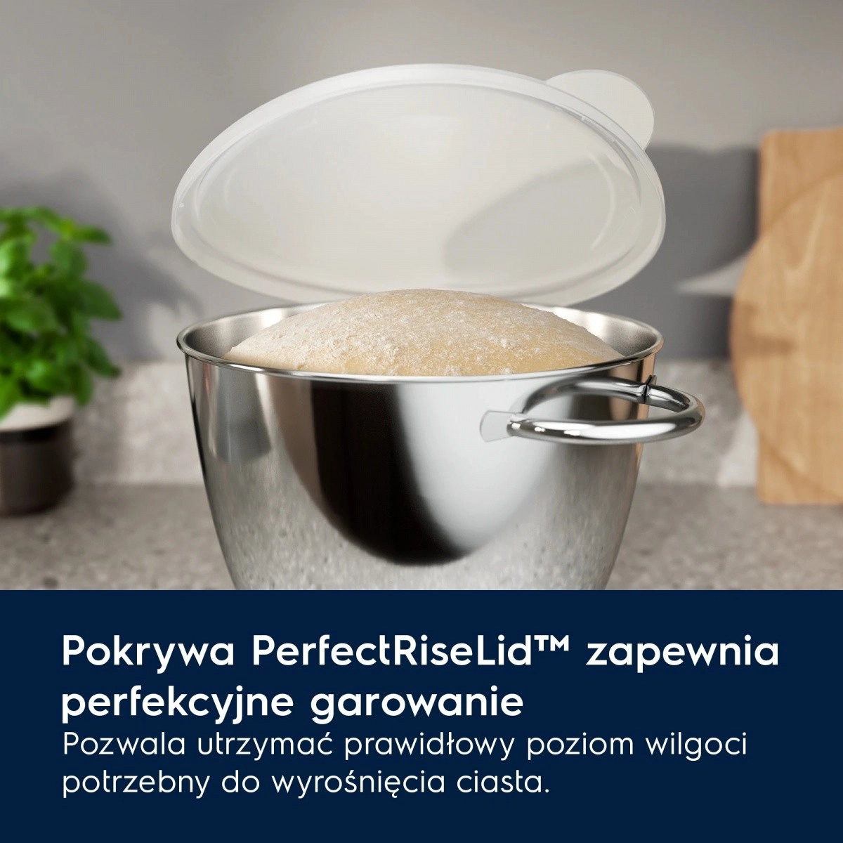 Vgrajeno planetarno mešanje enakomerno vmeša vse sestavine in pospeši pripravo testa za do 20 %. Zahvaljujoč LED-osvetlitvi imate odličen nadzor nad konsistenco zmesi tudi pri slabši svetlobi, pokrov PerfectRiseLid pa zagotovi idealne pogoje za vzhajanje – pravilno kroženje zraka in vlago brez izsuševanja površine.