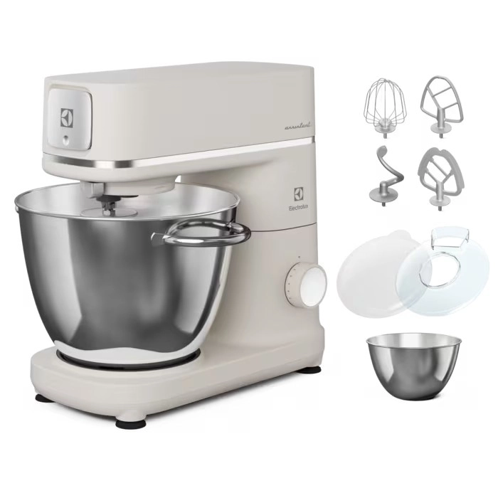 Bogata dodatna oprema razširi vaše možnosti v kuhinji. V paketu najdete kavelj za gnetenje težkih test, metlico za stepanje za sneg in glazure ter SoftEdgeBeater s silikonsko lopatko, ki bolje obriše stene sklede in skrajša čas mešanja.