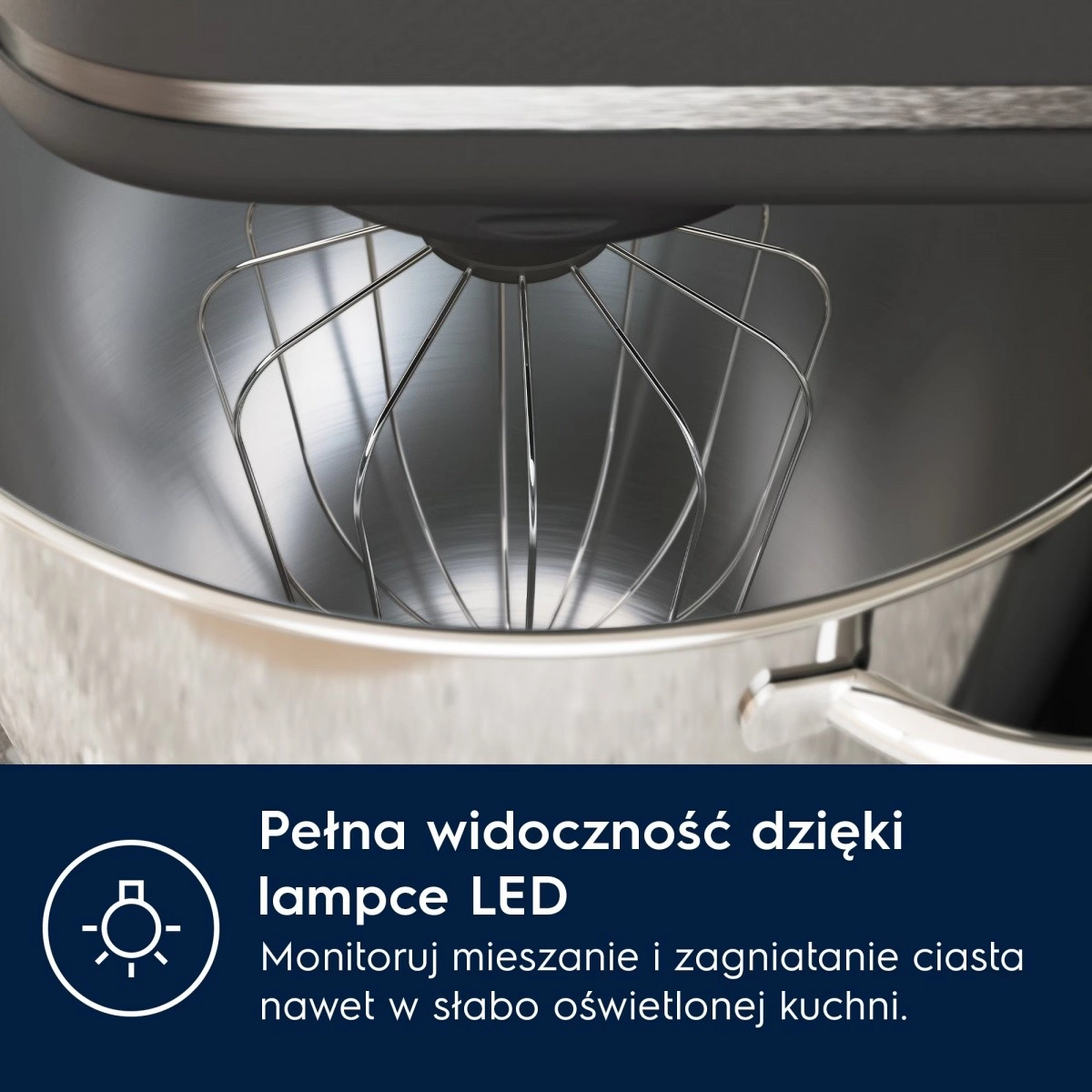 Odkrijte moč in natančnost pri peki in kuhanju. Dve veliki skledi (6 l in 4 l) vam omogočata izbrati idealno količino za vsako priložnost – od majhnih sladic do velikih porcij kvašenega testa. Z večjo skledo pripravite do 30 % več peciva v eni seriji.