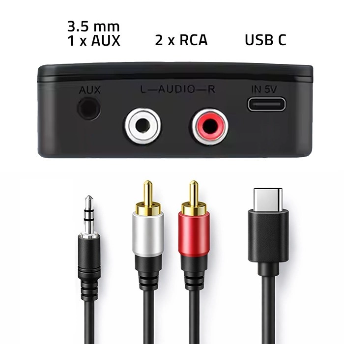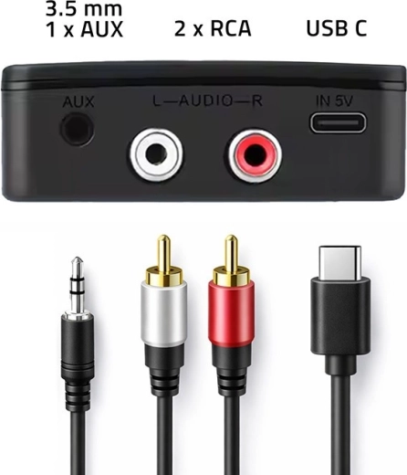 Široka združljivost zahvaljujoč izhodom 2× RCA in 3,5 mm AUX. Idealno za posodobitev starejših Hi‑Fi sistemov, ojačevalnikov in avtoradiev brez potrebe po zamenjavi naprav. Plug & Play pomeni brez namestitve gonilnikov – priključite in takoj uporabljate.
