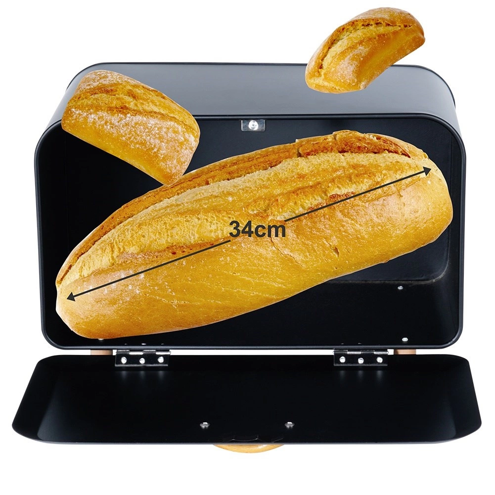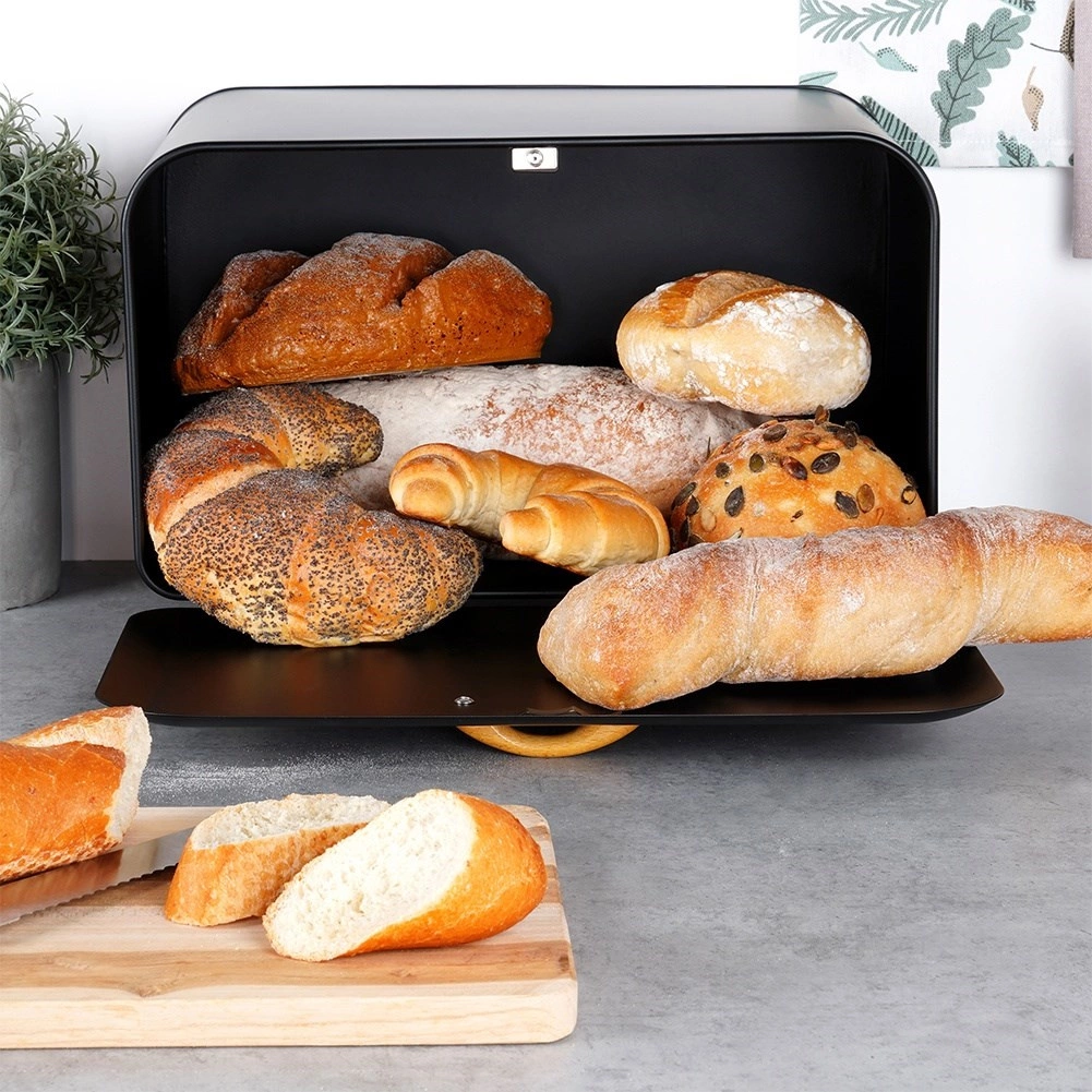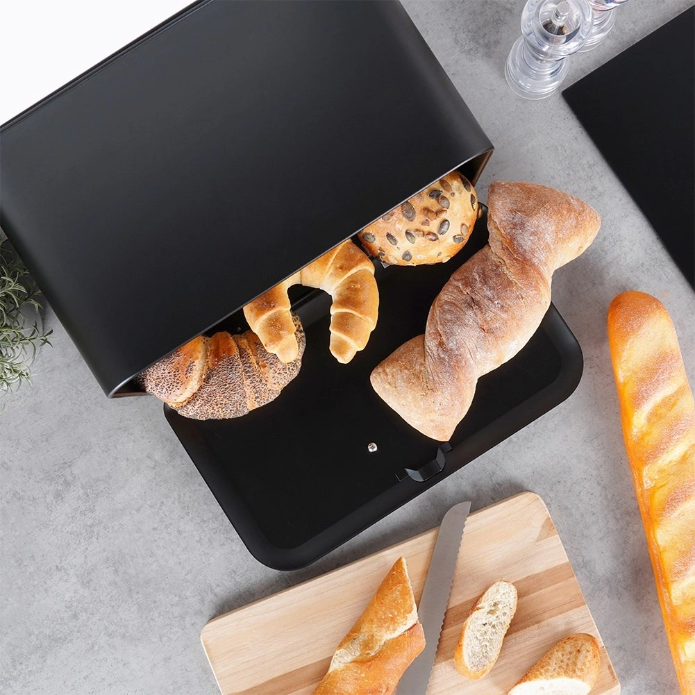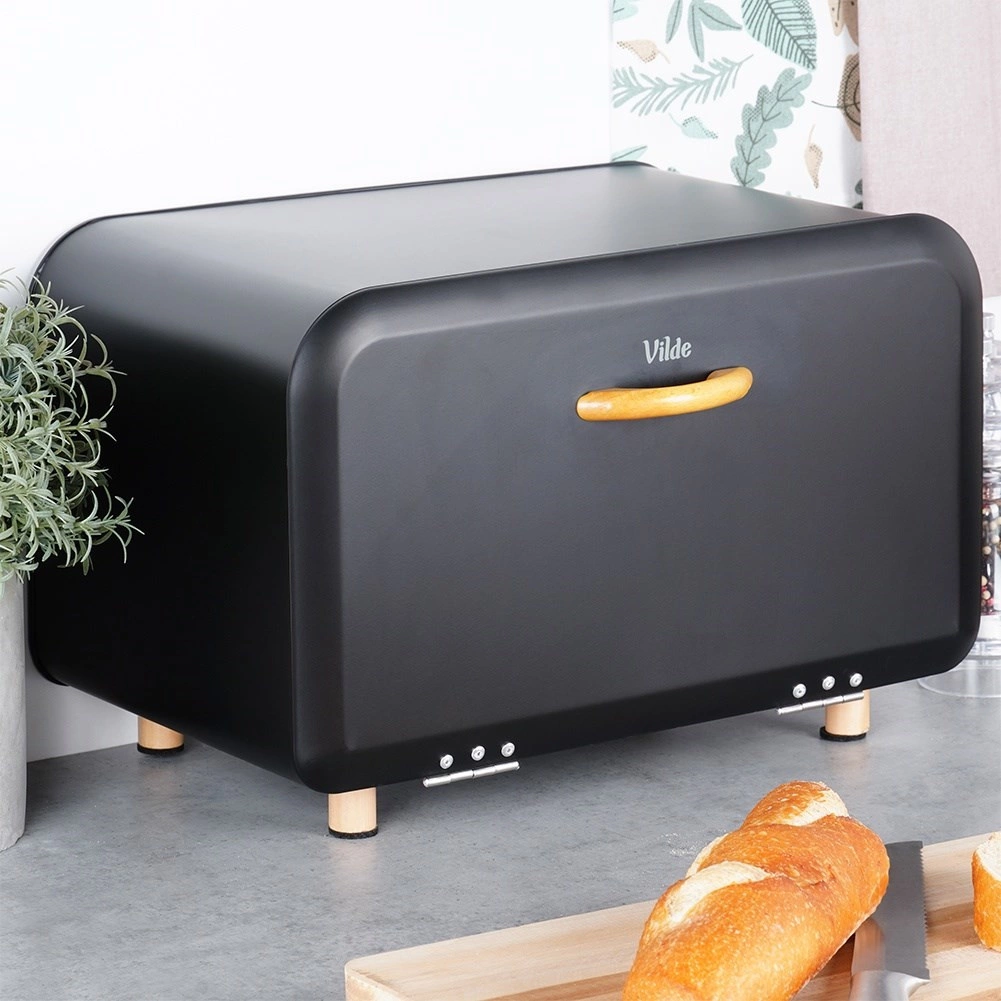 Ohranite svoje pecivo dlje dišeče in hrustljavo. Kovinski shranjevalnik za kruh Vilde v elegantni mat črni barvi omejuje dostop zraka ter pomaga ohraniti svežino in okus vaših hlebov ter žemljic. Zaradi kompaktnih mer se prilega na kuhinjski pult, hkrati pa nudi dovolj prostora za dnevno zalogo peciva.