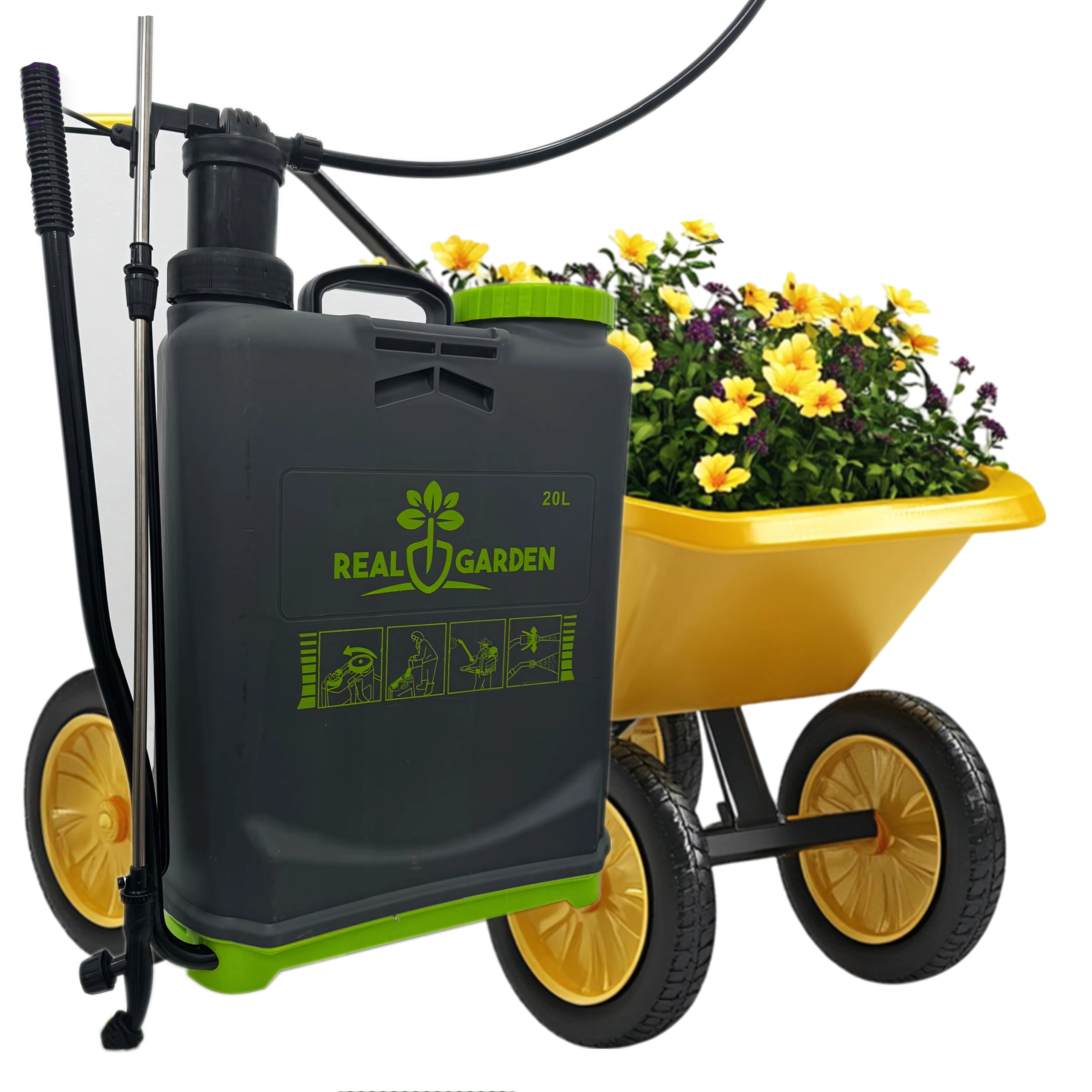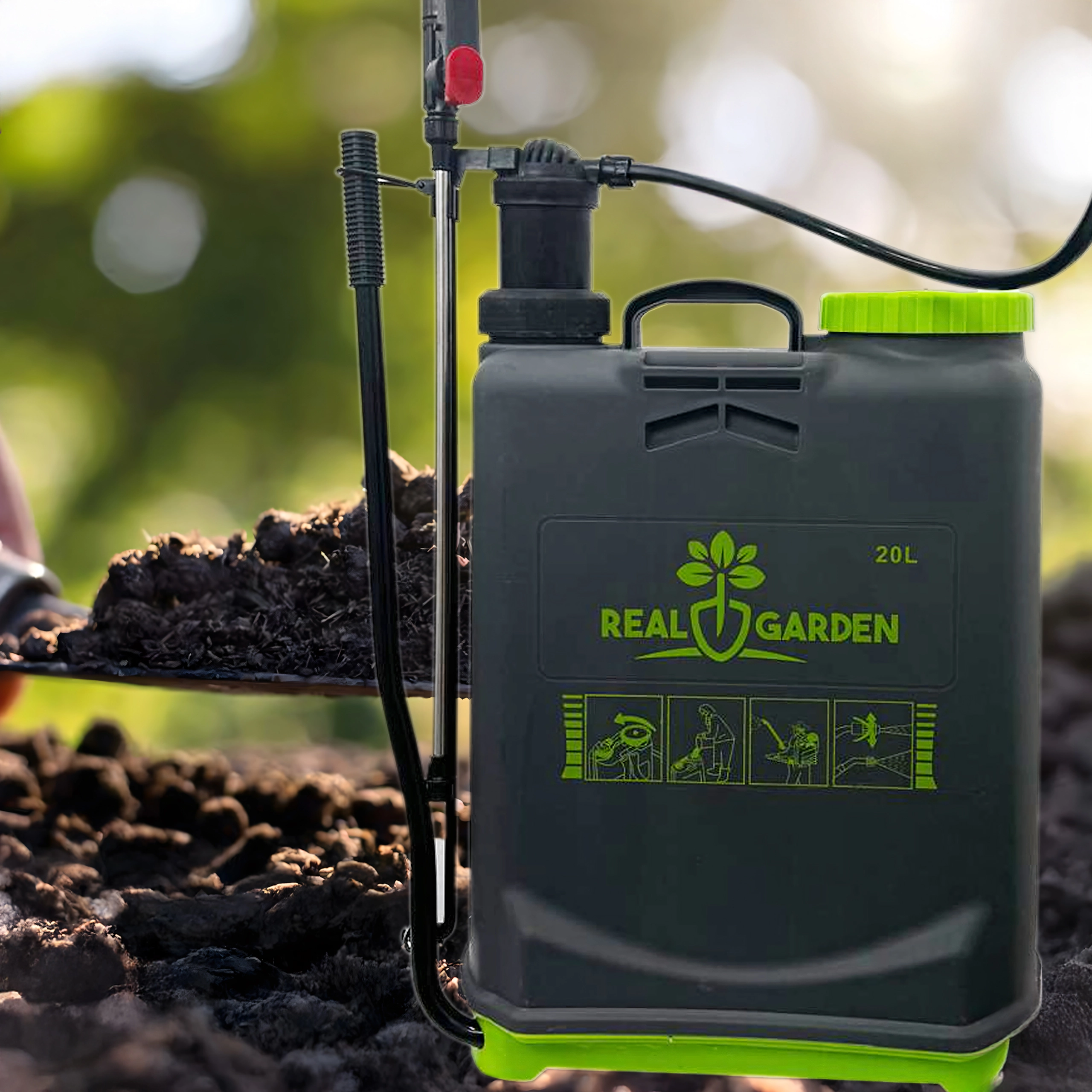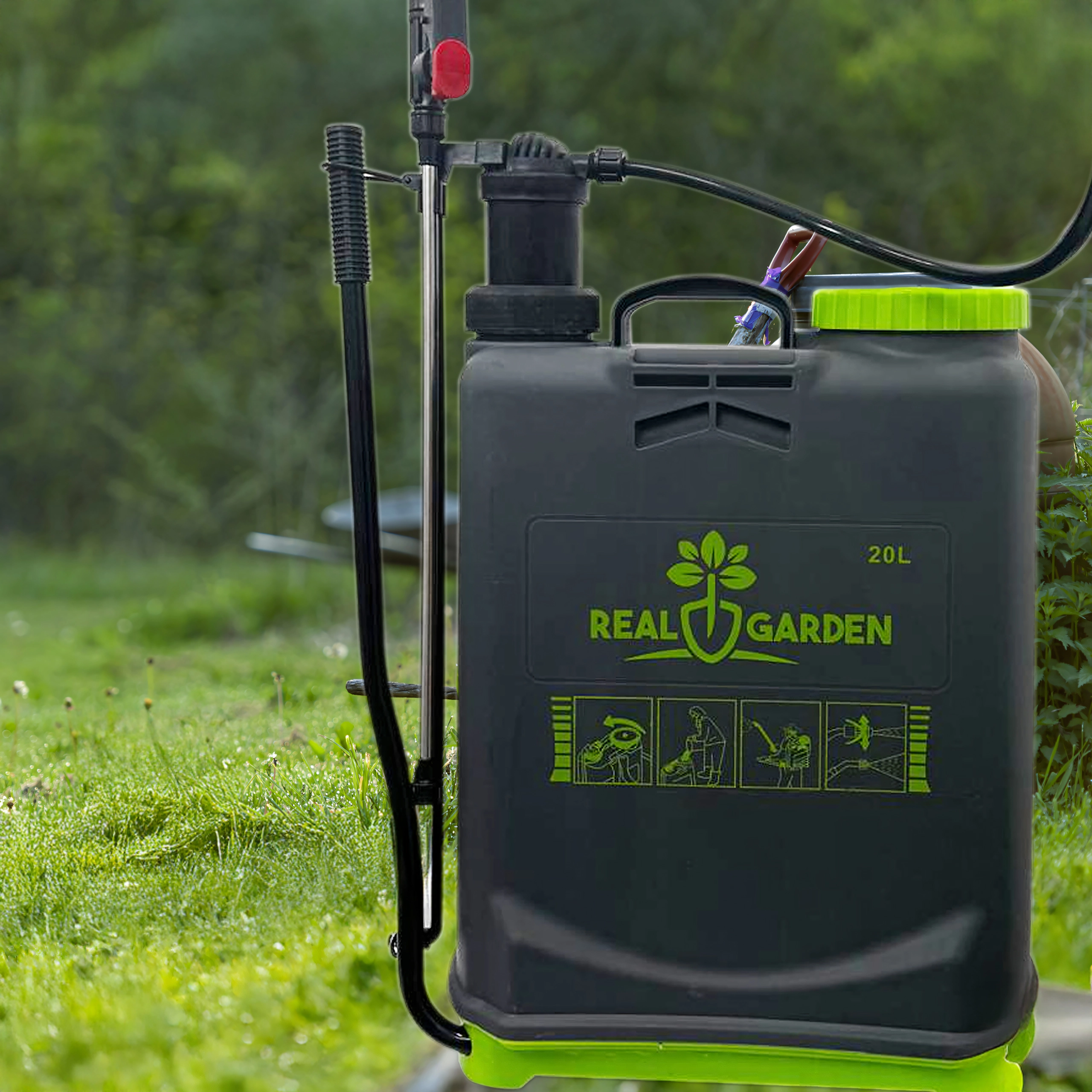 Ta nahrbtni tlačni razpršilec 20 l je zanesljiv pomočnik za zalivanje, gnojenje in zaščito rastlin. Robustni rezervoar z velikim vratom olajša polnjenje in čiščenje, ročna črpalka hitro ustvari potreben tlak, dolga razpršilna palica s pištolo pa zagotavlja natančno nanašanje tudi na težje dostopna mesta.