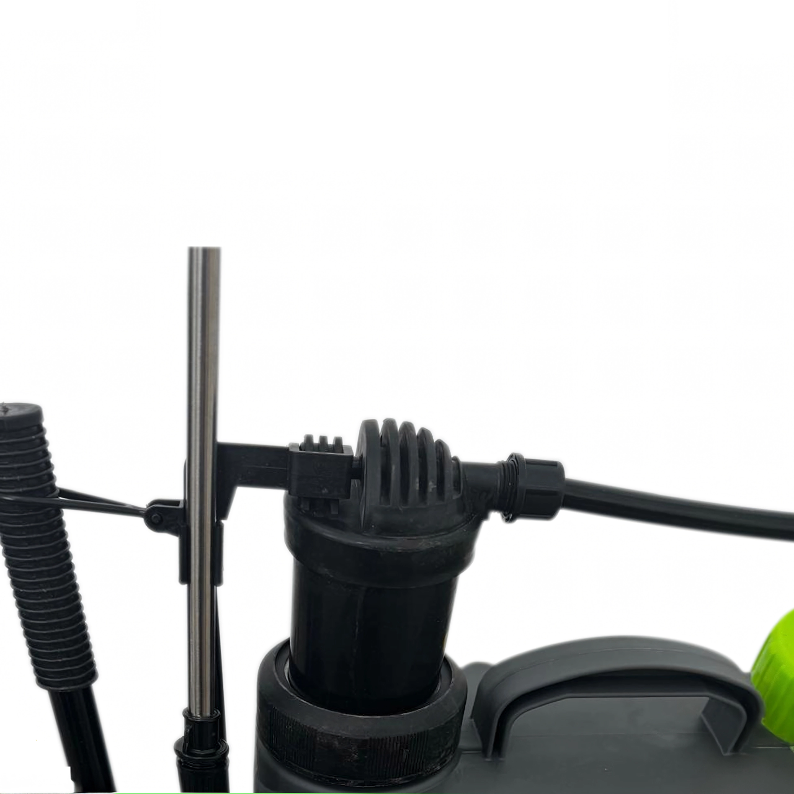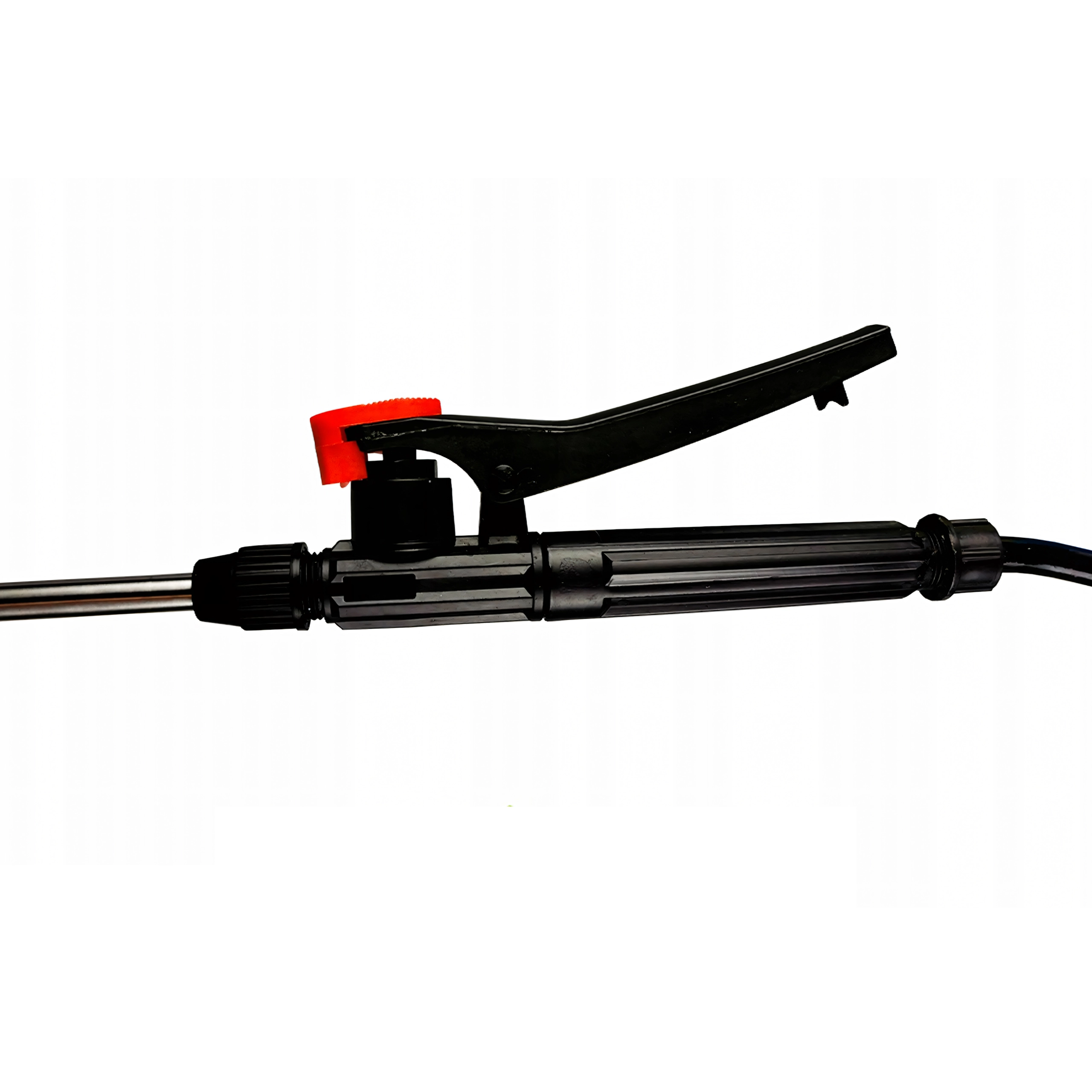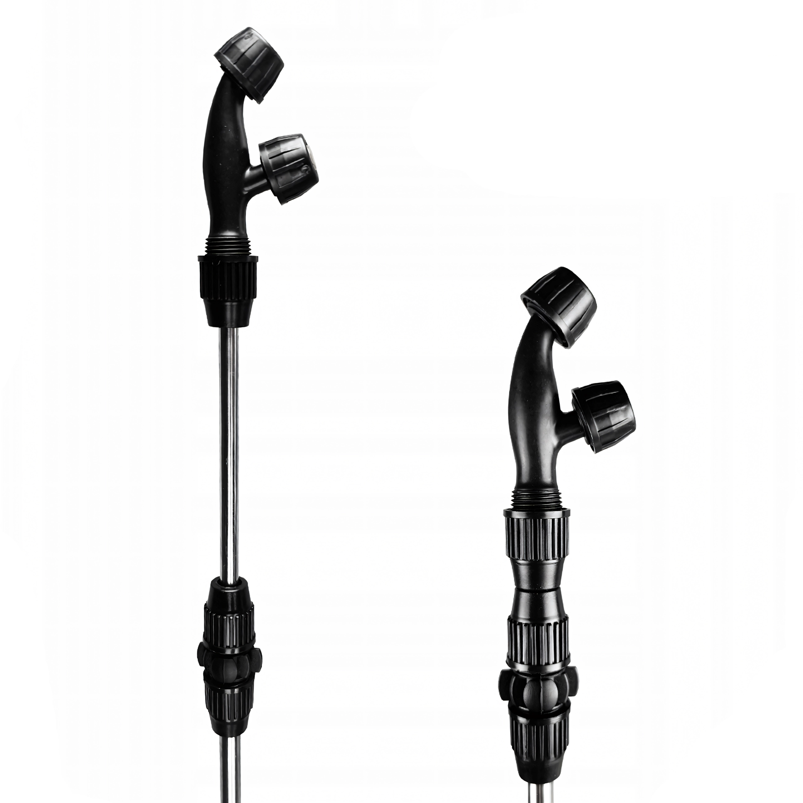 Dolga kovinska palica s pištolskim ročajem in regulacijo omogoča ciljno aplikacijo in varen doseg tudi v goste sestoje.