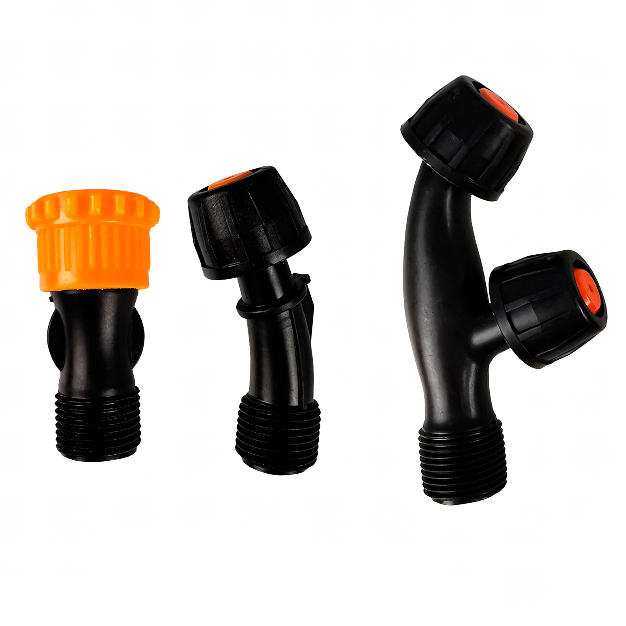Komplet več šob omogoča hitro spreminjanje značaja razpršila – fina meglica za listno gnojenje, pahljača za enakomerno prekrivanje in curek za točkovno obdelavo.