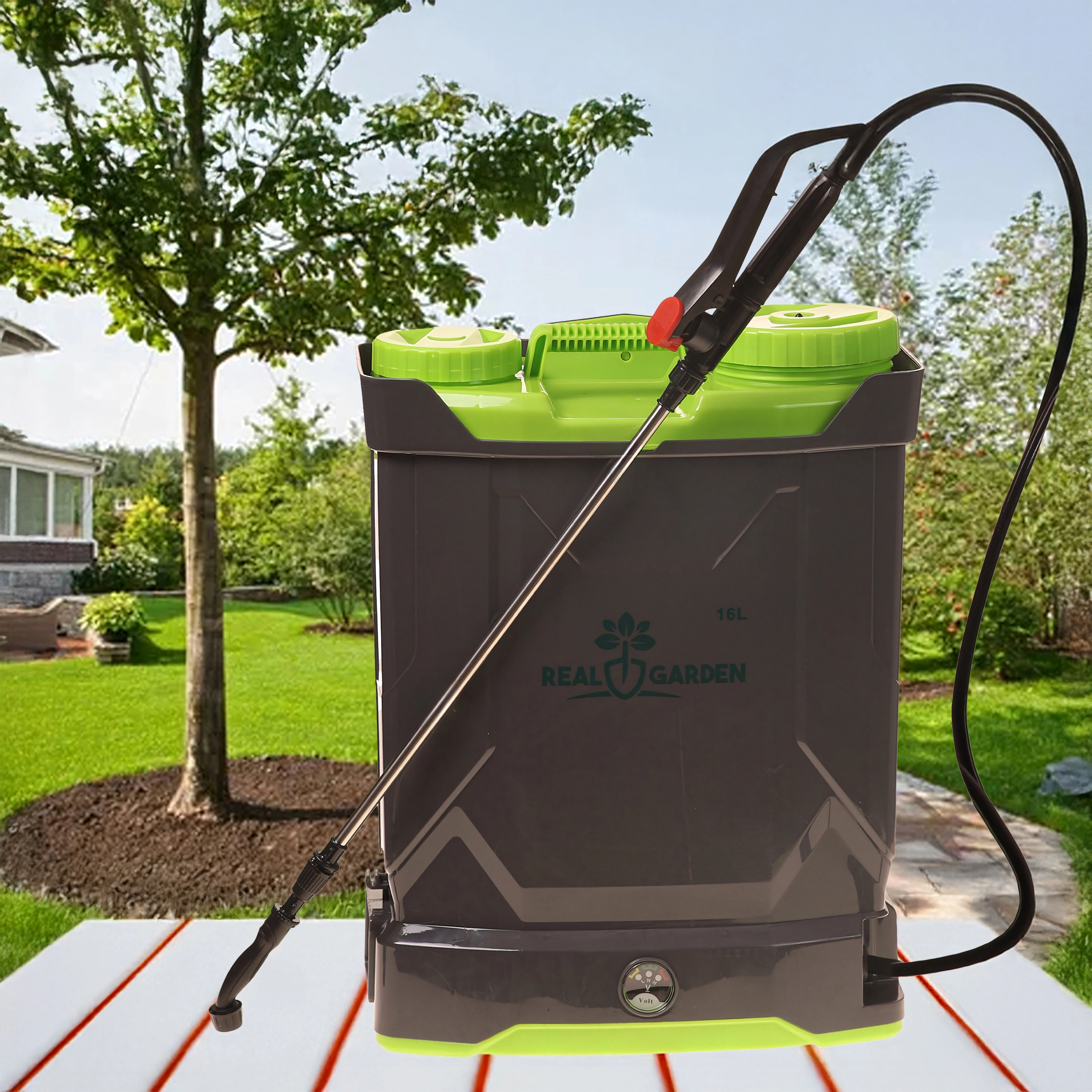 Vgrajena črpalka zagotavlja enakomerno škropljenje brez ročnega črpanja – prihrani čas in trud pri vsakodnevnem vzdrževanju vrta.