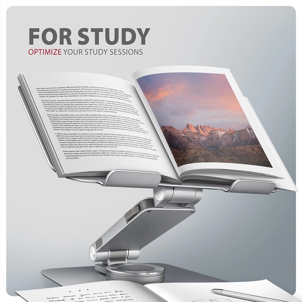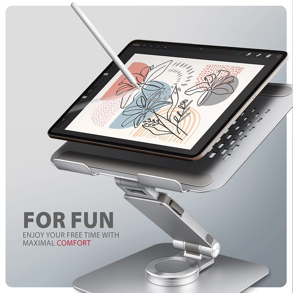 AXAGON STND-LR je premišljeno stojalo za prenosnike in tablice, ki poveča ergonomijo dela doma in v pisarni. Vrtljivost 360° omogoča enostavno deljenje zaslona ali spremembo orientacije brez premikanja osnovnega dela, medtem ko dvojni zglob in nastavitev nagiba pomagata nastaviti idealno višino in kot za razbremenitev vratne hrbtenice.