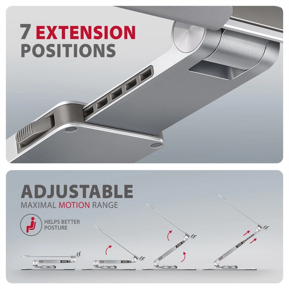 Aluminijasto stojalo za prenosnik AXAGON STND-LR 10–17,3″, vrtljivo 360°, sivo