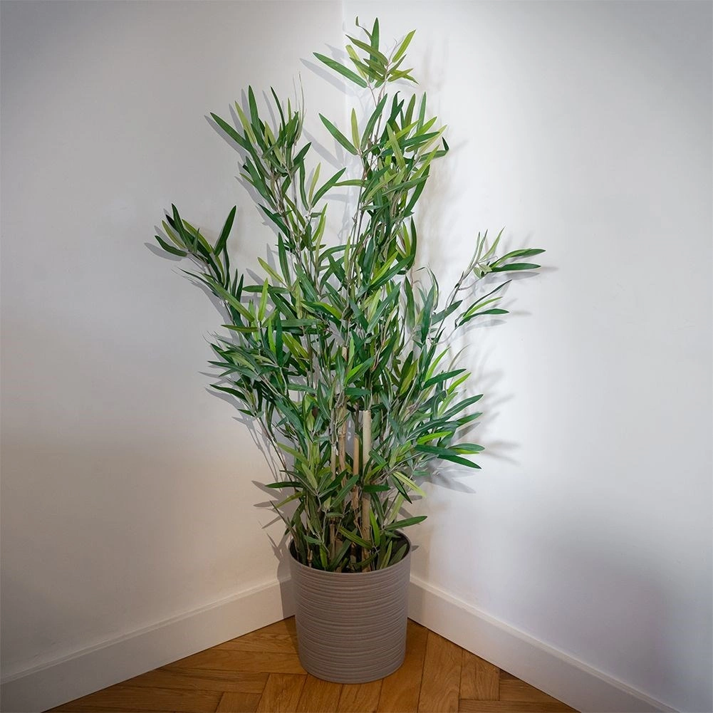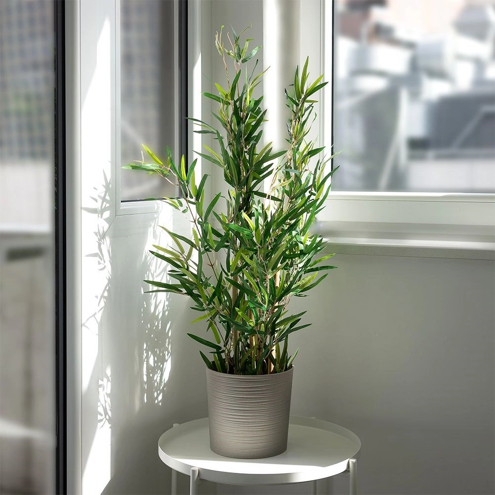 Dekorativni umetni bambus, visok 97 cm, prostoru doda svežo zelenje brez zahtevnega vzdrževanja. Ima realističen videz, stabilen lonček in trpežne materiale v sodobni črni/sivi barvi. Odličen kot nezahtevna zelena dekoracija za dnevno sobo, pisarno ali vhodne hale.