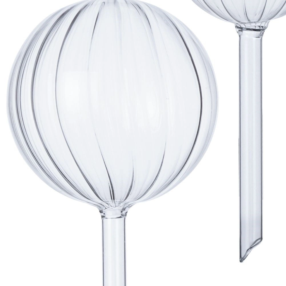 Set dveh steklenih namakalnih krogel je idealen za redno in nežno zalivanje sobnih in balkonskih rastlin. Dovolj je, da jih napolnite z vodo in z vratom vstavite v substrat – krogle bodo samodejno odmerjale vodo natančno po potrebi rastline in ohranjale zemljo enakomerno vlažno.