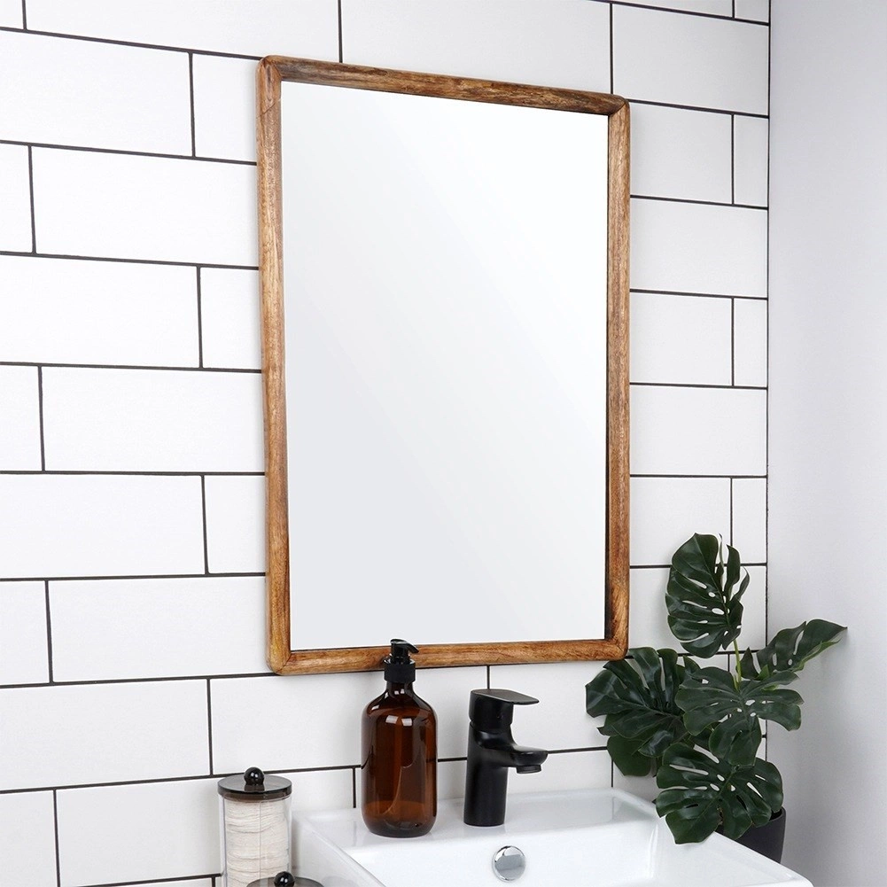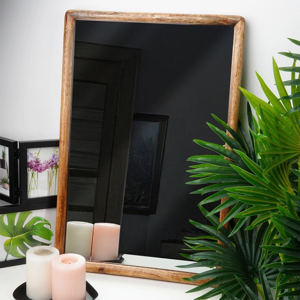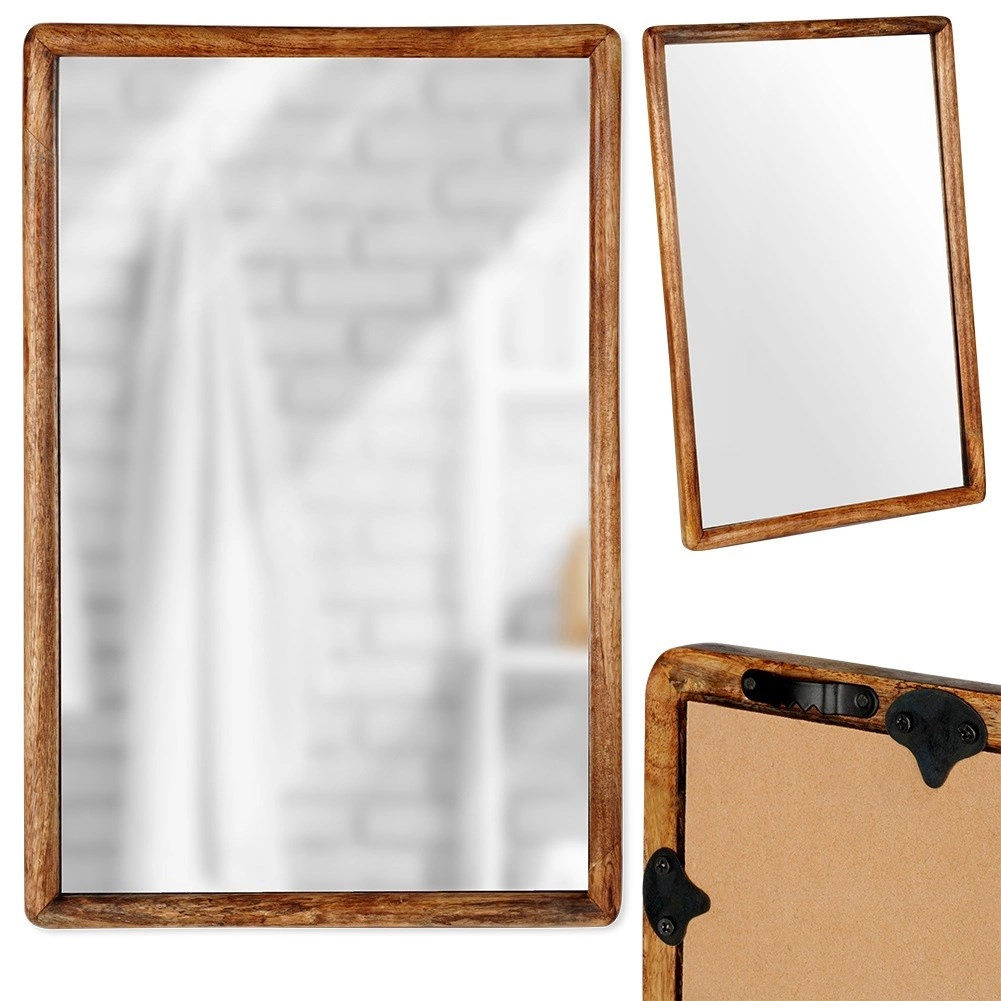 Elegantno stensko ogledalo z merami 40 × 60 cm v naravnem lesenem okvirju iz mangovega lesa doda prostoru stil in svetlobo. Lahko ga obesite vertikalno ali horizontalno, odlično se poda v dnevno sobo, predsobo in spalnico. Ponuja čist in jasen odsev ter postane praktičen in estetski dodatek vsakemu interierju.
