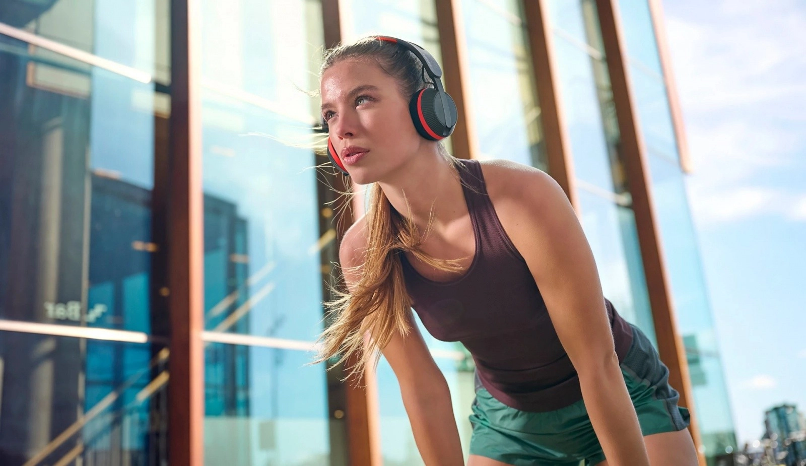 Odlične so za aktiven življenjski slog: udoben naglavni trak trdno stoji, zračne ušesne blazinice s hladilnim gelom povečajo udobje, njihove lahko snemljive prevleke pa očistite v hipu. Zahvaljujoč IP55 brez težav zdržijo dež, znoj in prašne poti.