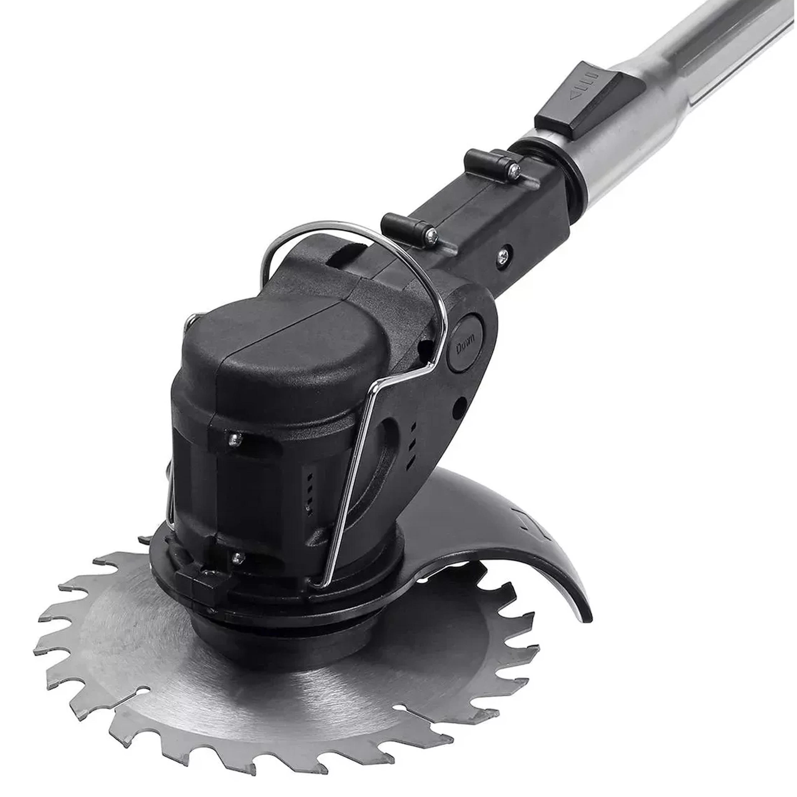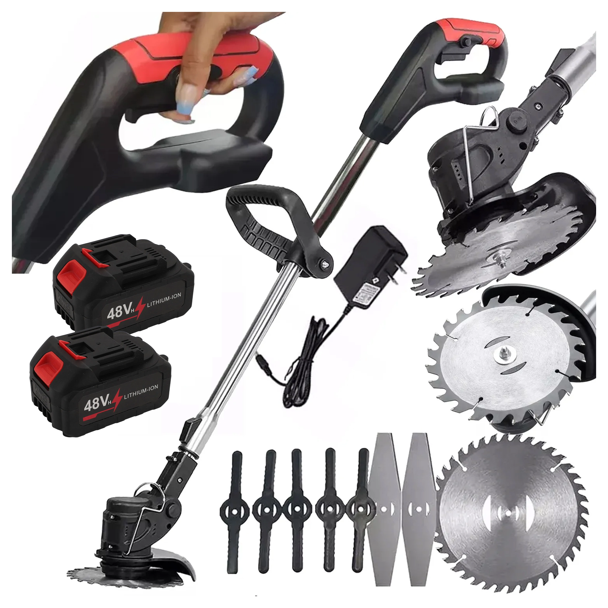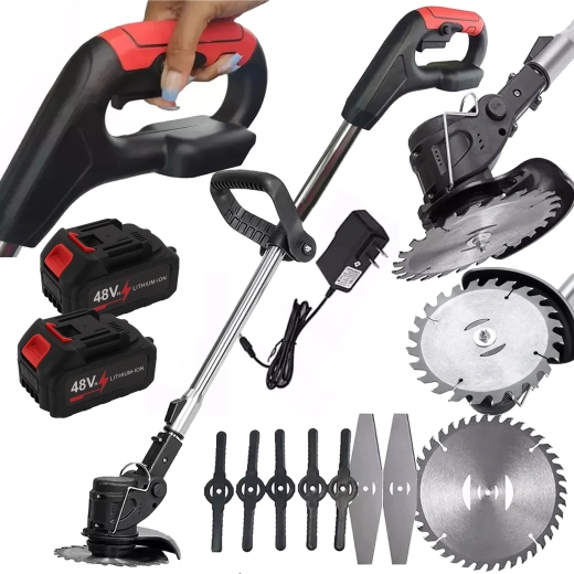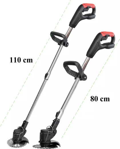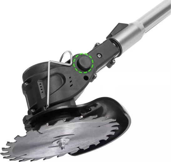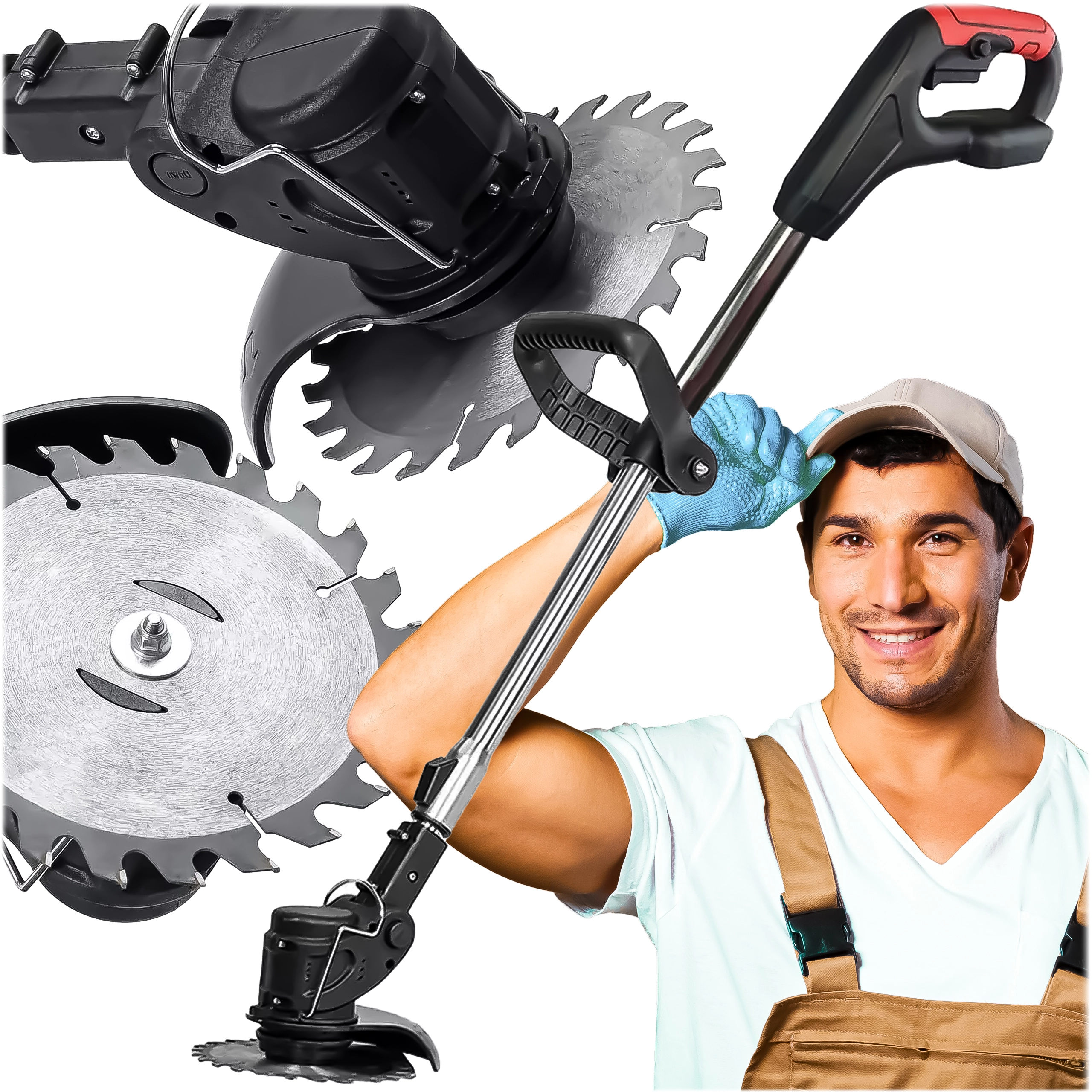 Naprava je dobavljena z 2× Li-Ion 48 V baterijama in polnilcem, zato lahko delate dlje brez nepotrebnih prekinitev. Zahvaljujoč nastavljivemu nagibu glave in pomožnemu ročaju dosežete čiste robove ob poteh, ograjah in okoli dreves. Robusten dizajn ter možnost uporabe plastičnih, kovinskih in žagnih kolutov jo naredita za vsestranskega pomočnika za vsak vrt.