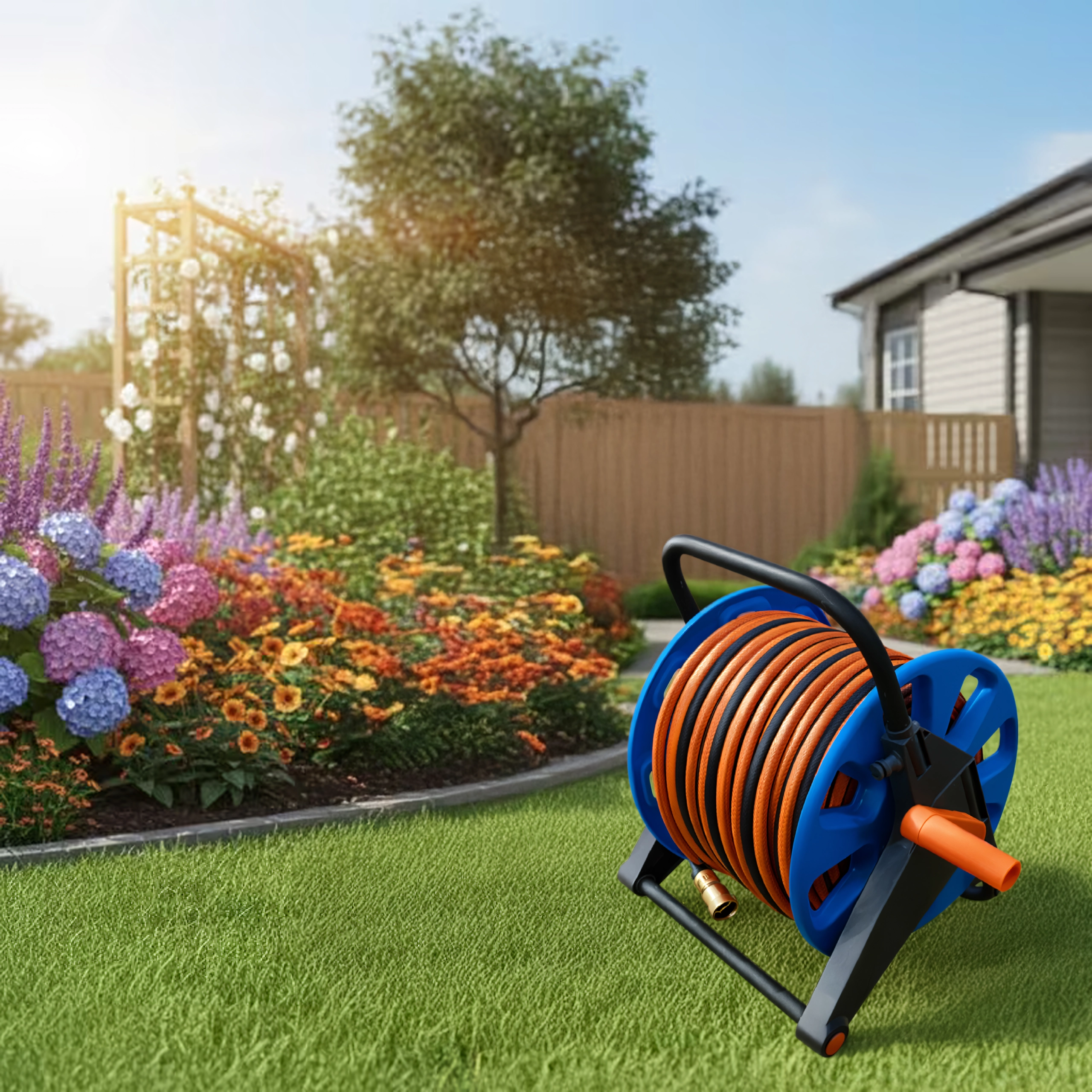 Boben sprejme do 50–60 m vrtne cevi, idealno za večje vrtove in daljši doseg.