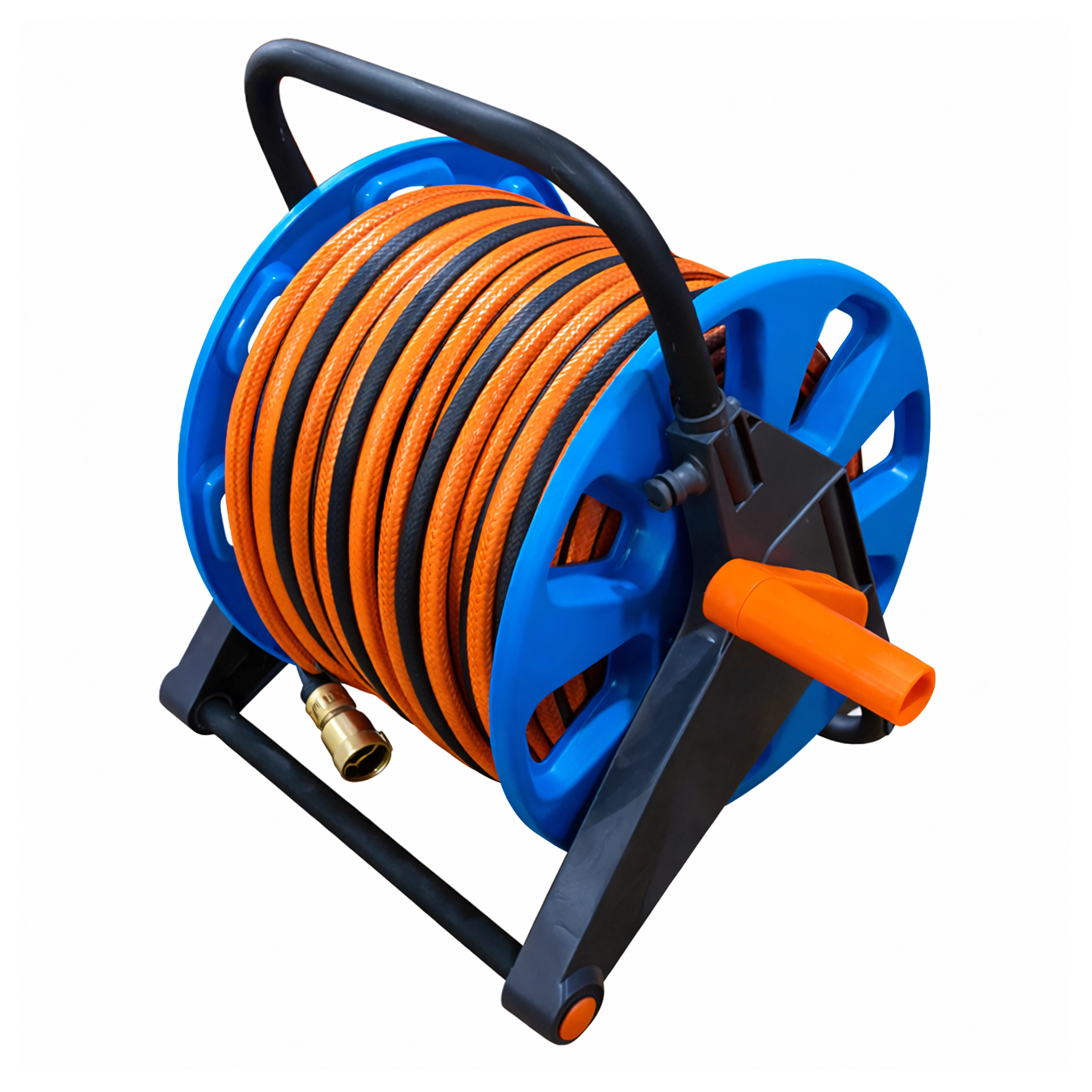 Praktičen prenosni kolut ohranja vašo vrtno cev vedno urejeno shranjeno in pripravljeno za uporabo. Zahvaljujoč lahki konstrukciji in udobni ročici je navijanje in prenašanje enostavno. Na kolut gre do 50–60 m cevi, zato je idealen za vrt, dvorišče in delavnico. Brez vozlov in nereda – le hitro navijanje, čisto shranjevanje in preprosto rokovanje.