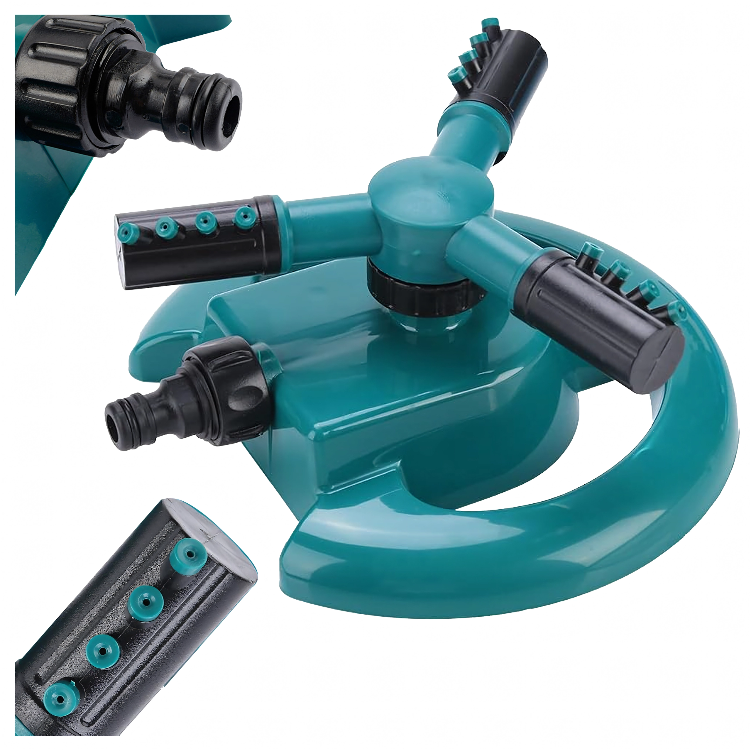Praktičen vrtni zalivalnik s trikrako glavo zagotavlja enakomerno zalivanje trate in gredic. Zahvaljujoč 360° rotaciji in nastavljivim šobam pokrije veliko površino, je stabilen, enostavno se priključi na standardno vrtno cev ter prihrani čas in vodo.