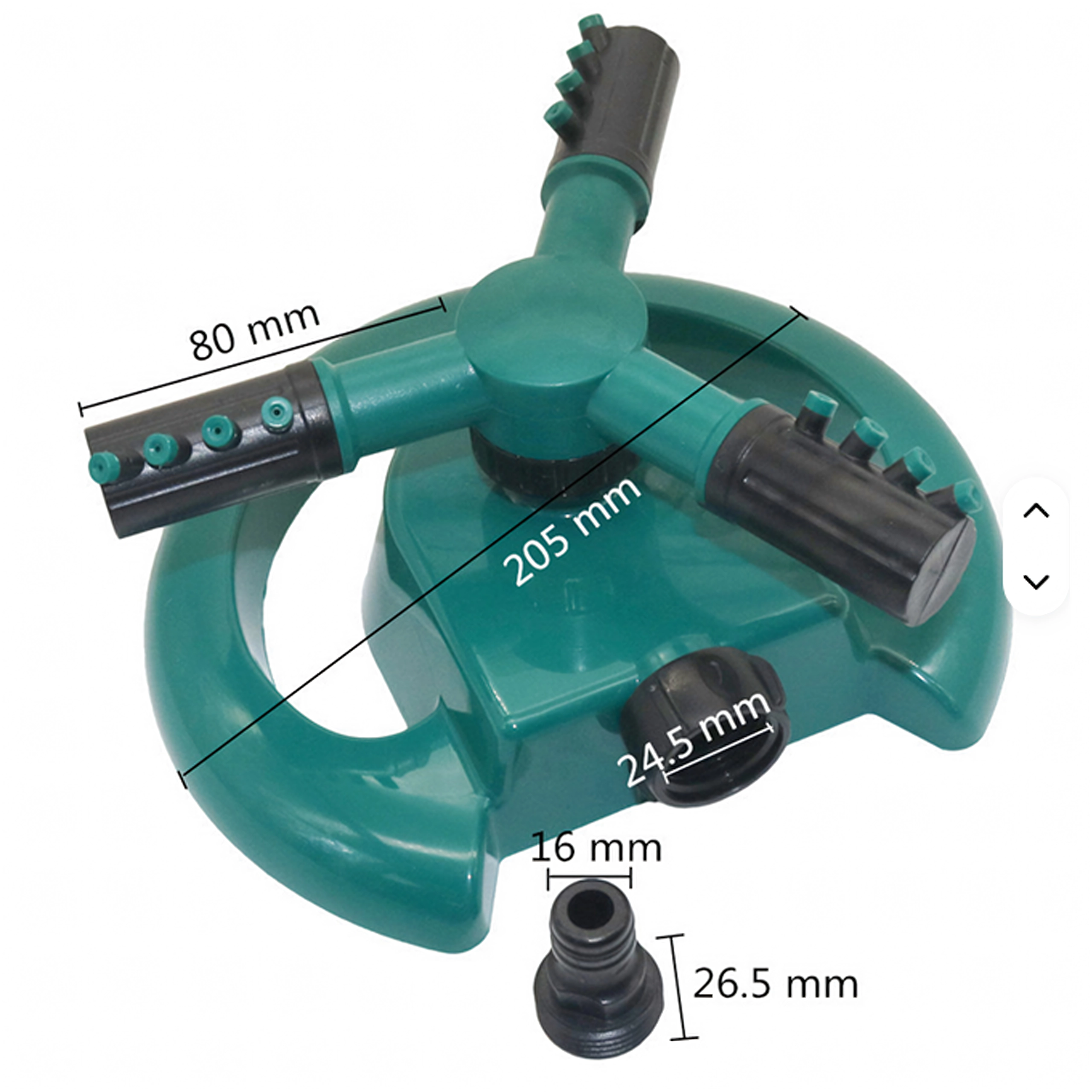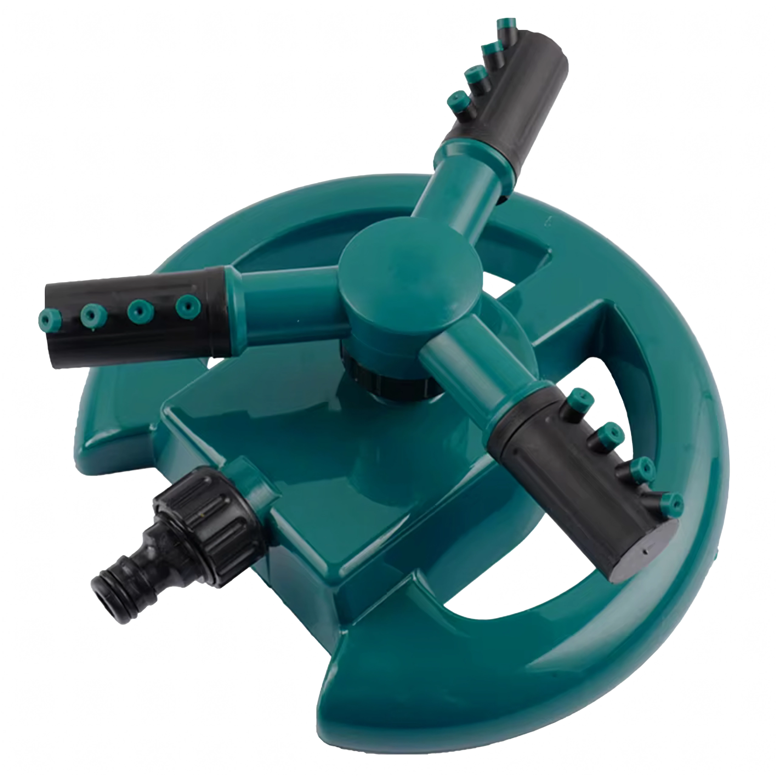 Ta trikraki rotacijski razpršilnik je idealen za redno zalivanje trat, cvetličnih gredic in zelenjavnih vrst. Robustno krožno stojalo zagotavlja stabilnost med delovanjem, medtem ko več šob na krakih ustvarja nežen dež za varčno in enakomerno zalivanje.