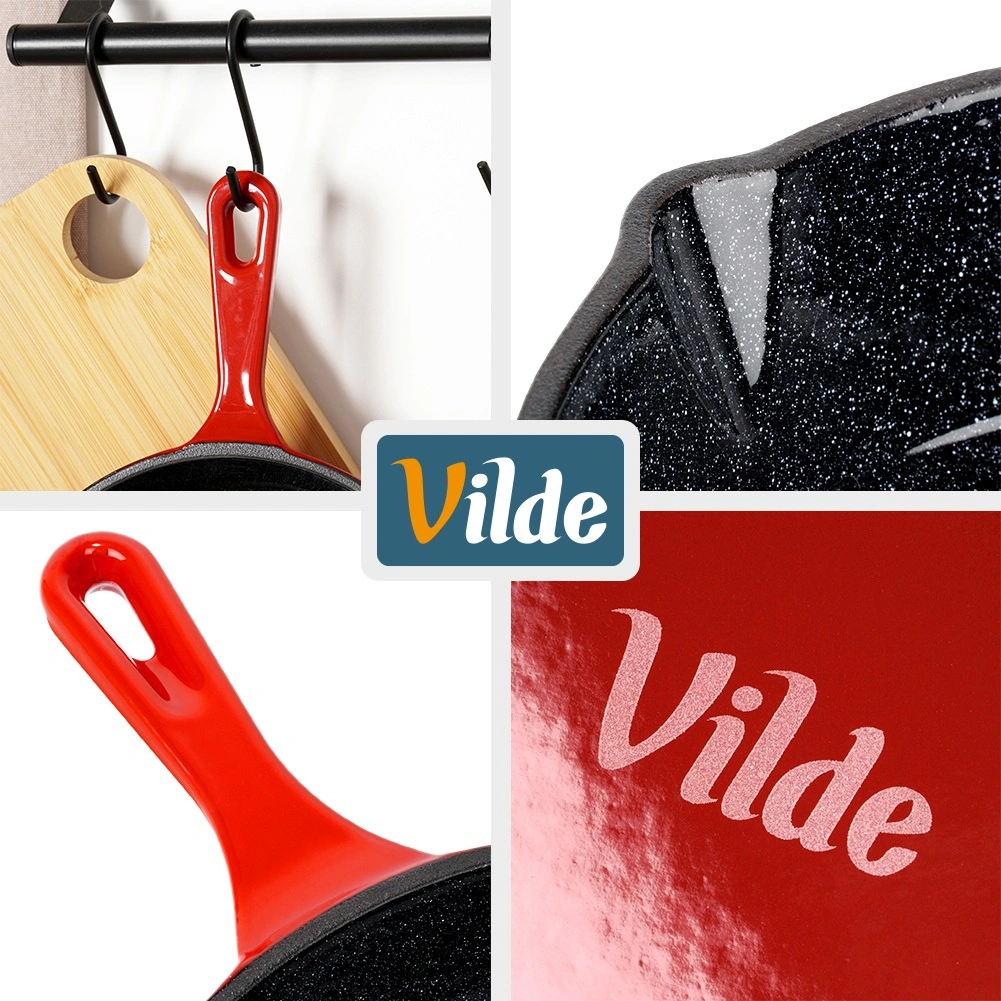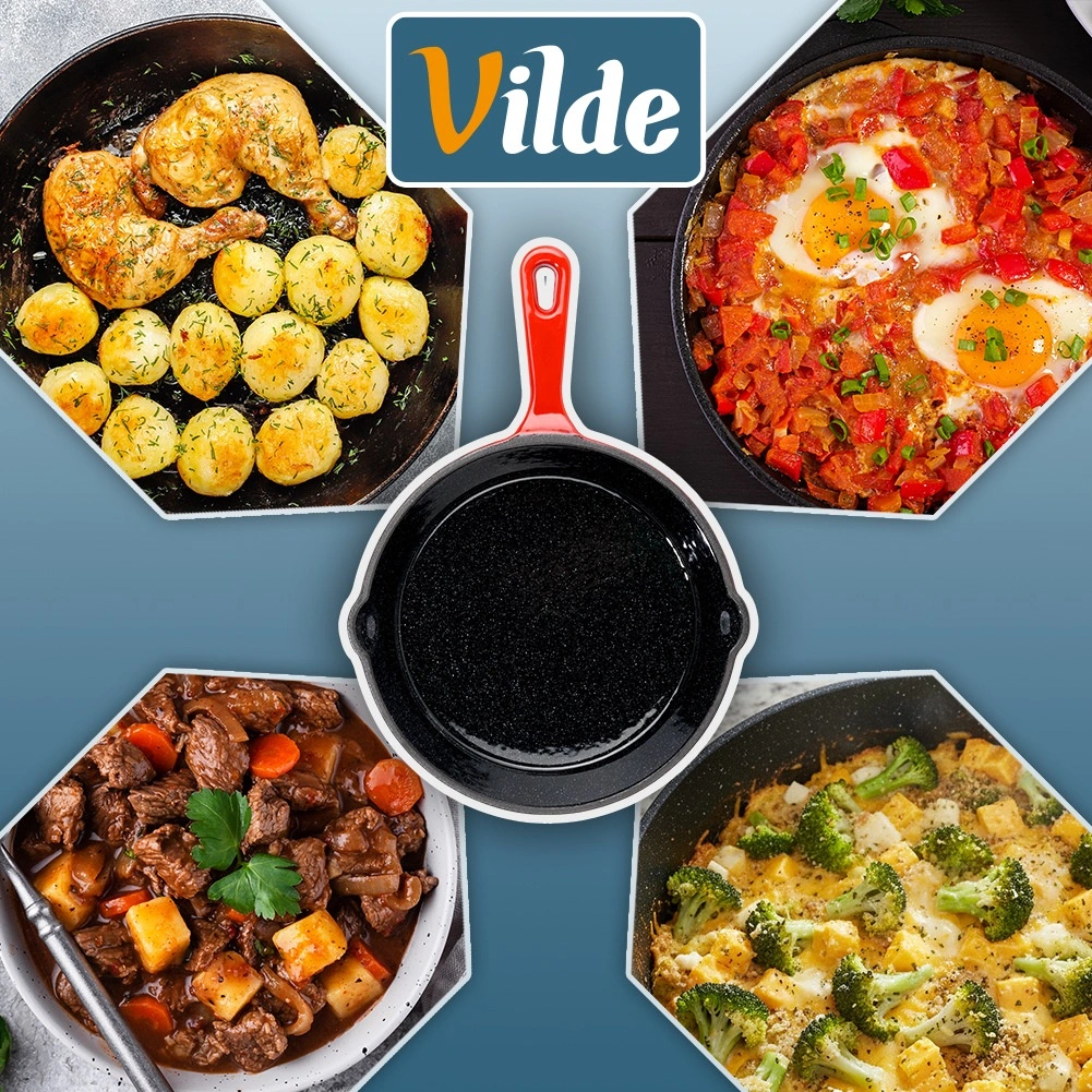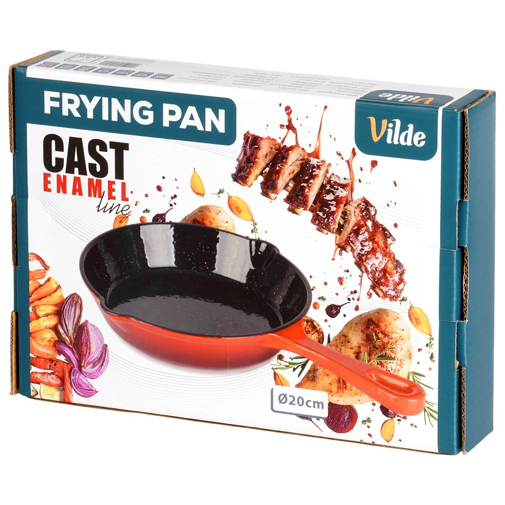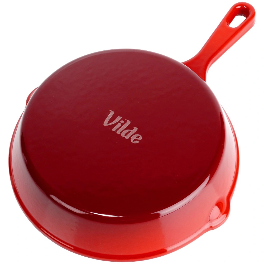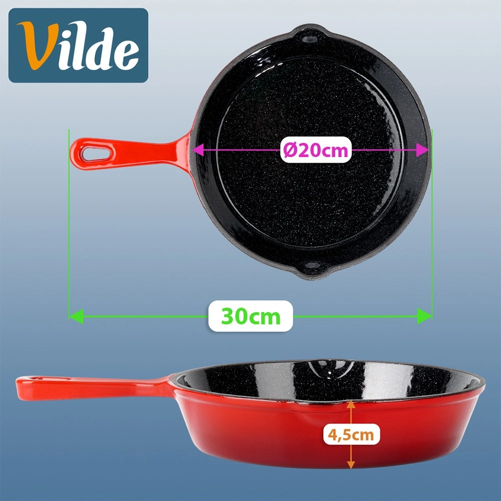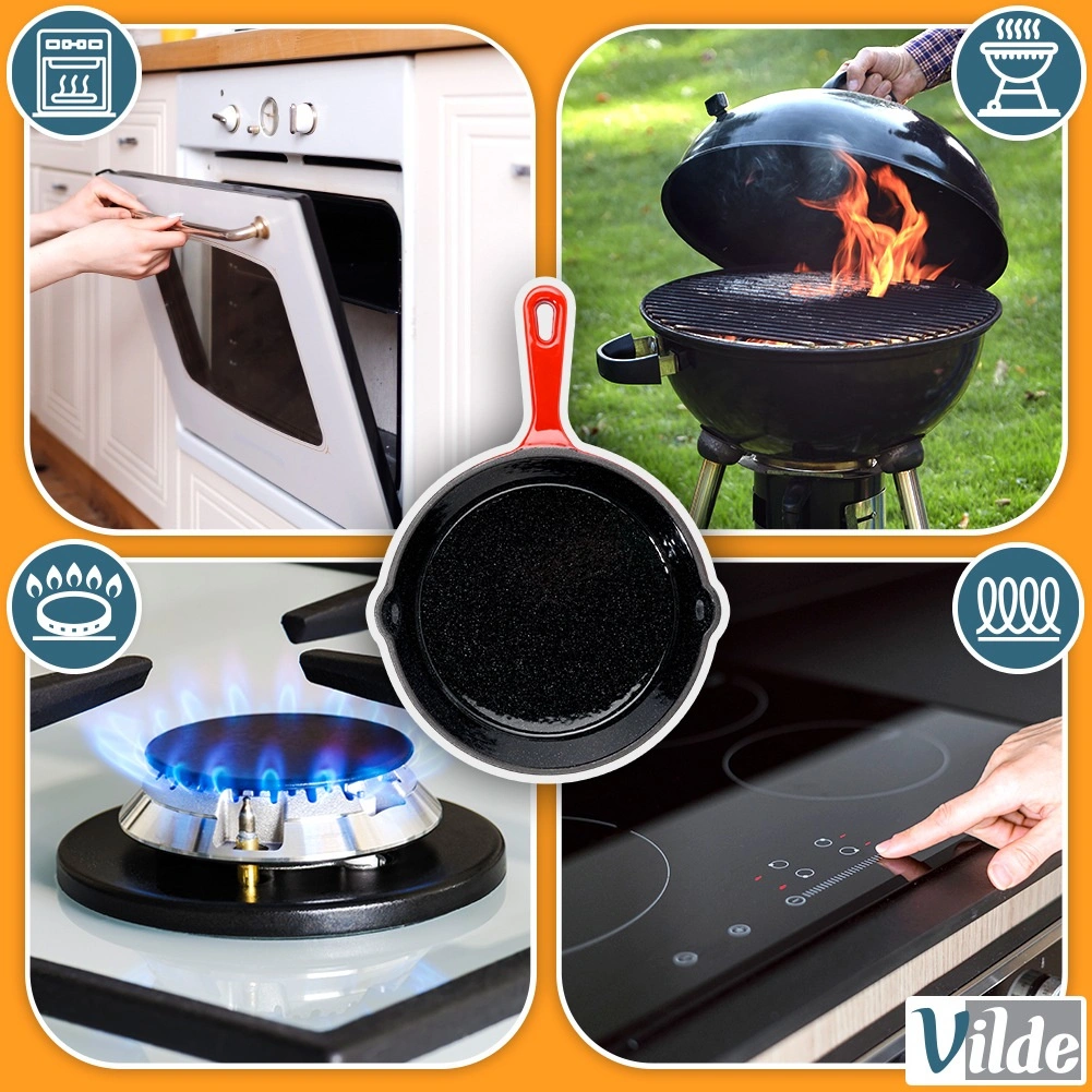 Univerzalna uporaba v kuhinji, na žaru in nad odprtim ognjem naredi to ponev odličnega spremljevalca doma in na poti. Trdna izdelava in brezčasen dizajn v rdeči barvi poudarjata kakovost znamke VILDE iz linije CAST ENAMEL.