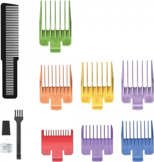 Za natančno dolžino skrbi nastavljiva ročica s tremi položaji (0,8 mm, 1,5 mm, 1,8 mm) ter 7 barvno označenih nastavkov glavnikov (3, 6, 10, 13, 16, 19, 22 mm). Zahvaljujoč močnemu, visoko vrtljivemu motorju je strižnik idealen za kratko, gladko dlako in nežne popravke srednje dolge dlake.