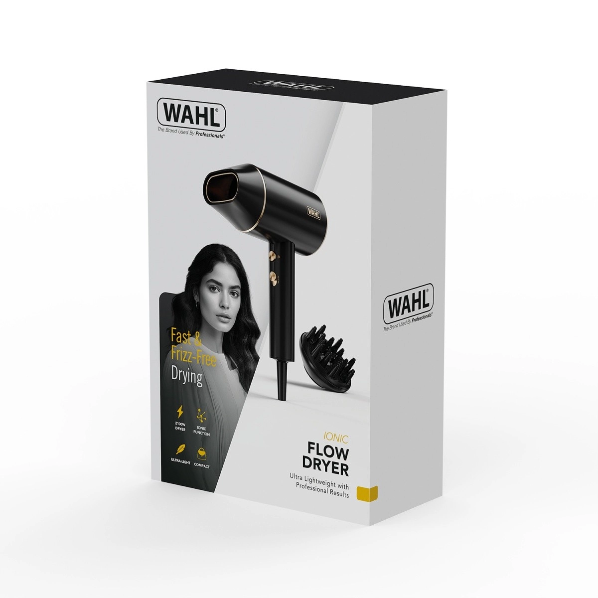 Sušilnik za lase WAHL Ionic Flow združuje močan, enakomeren pretok zraka z lahko konstrukcijo za udobno vsakodnevno uporabo. Ionska tehnologija zmanjšuje statično elektriko in kodranje, skrajša čas sušenja ter pusti lase gladke in sijoče.