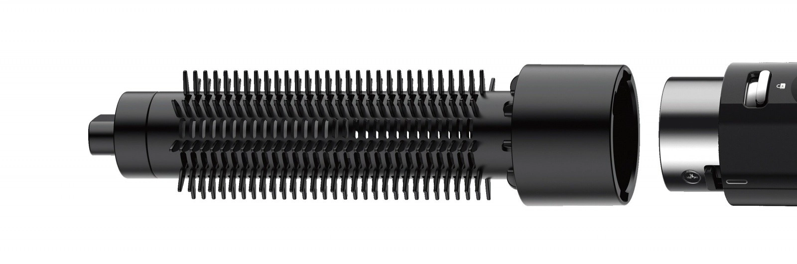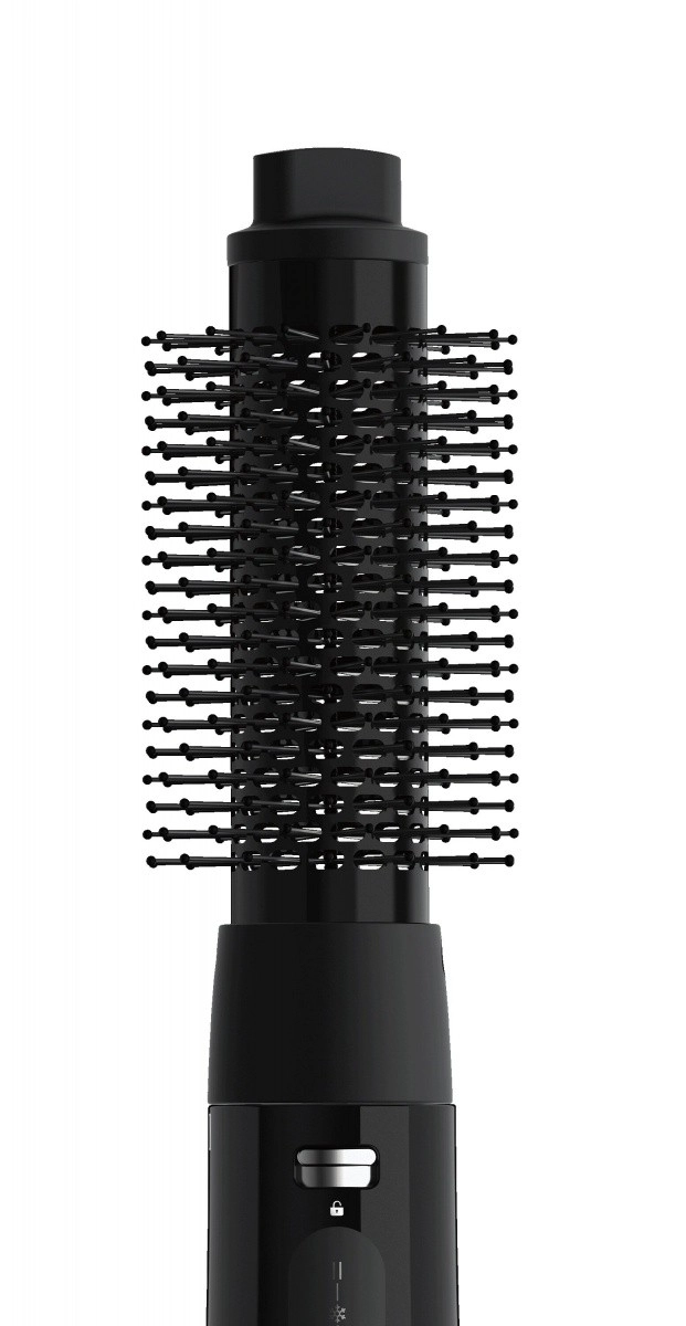 Odstranljiv nastavek z gostimi ščetinami pomaga ustvariti zavihane konice navznoter ali navzven ter naraven volumen brez krepavosti.