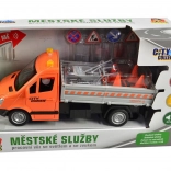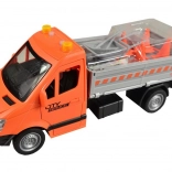 Ta oranžen tovornjak z nakladalno ploščadjo in nagibnimi rampami otrokom ponuja avtentično izkušnjo mestnih služb in cestnih del. Vztrajnostni pogon omogoča gladko vožnjo brez baterij, medtem ko realistične podrobnosti in dodatki spodbujajo razvoj domišljije in fine motorike.