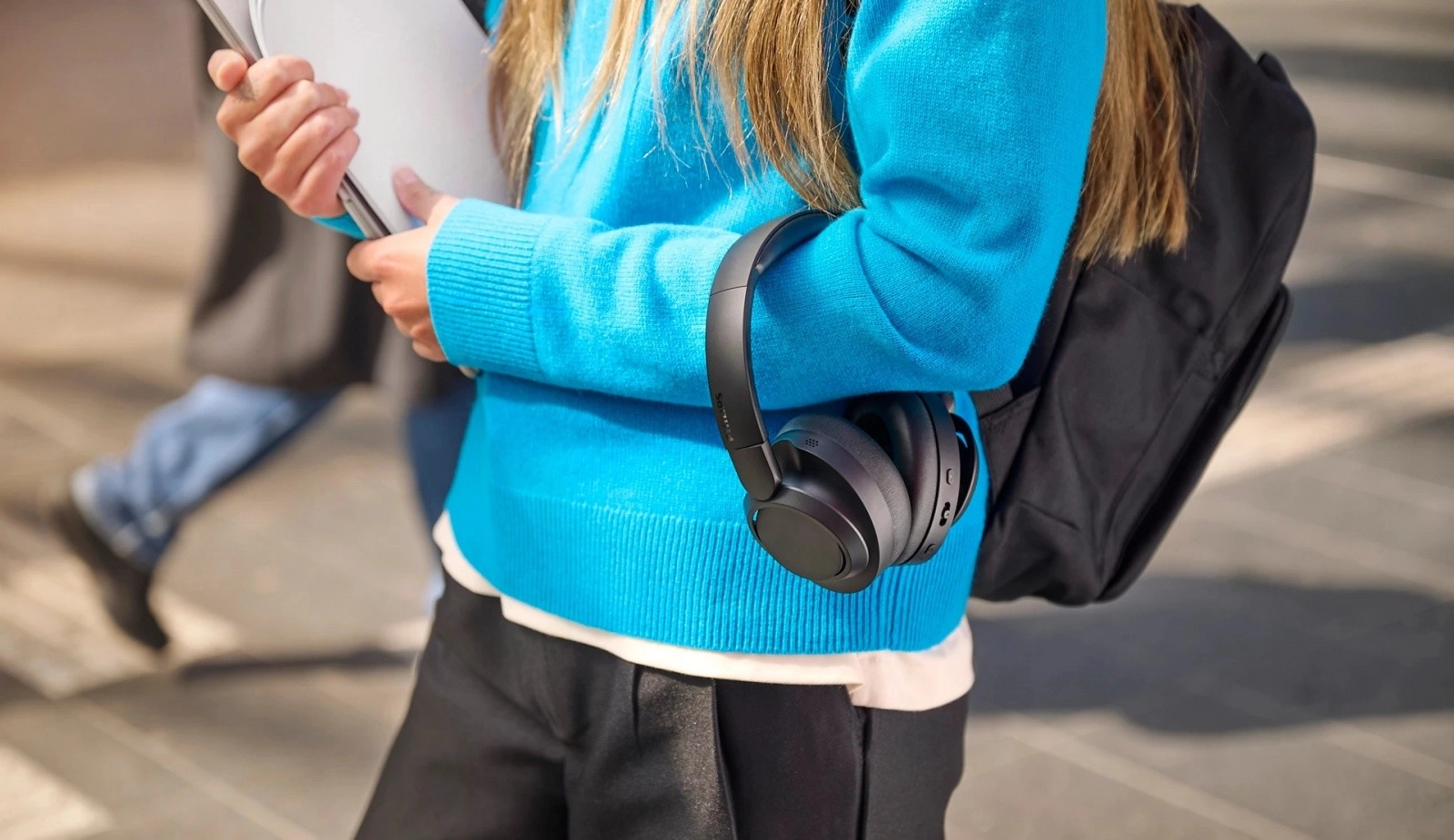 Ušesne blazinice iz spominske pene in nastavljiv naglavni trak zagotavljajo celodnevno udobje. Ušesne školjke se zložijo na ravno in navznoter – idealno za nahrbtnik ali torbo na poti.